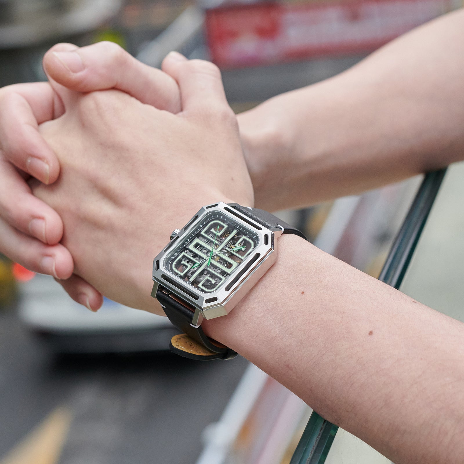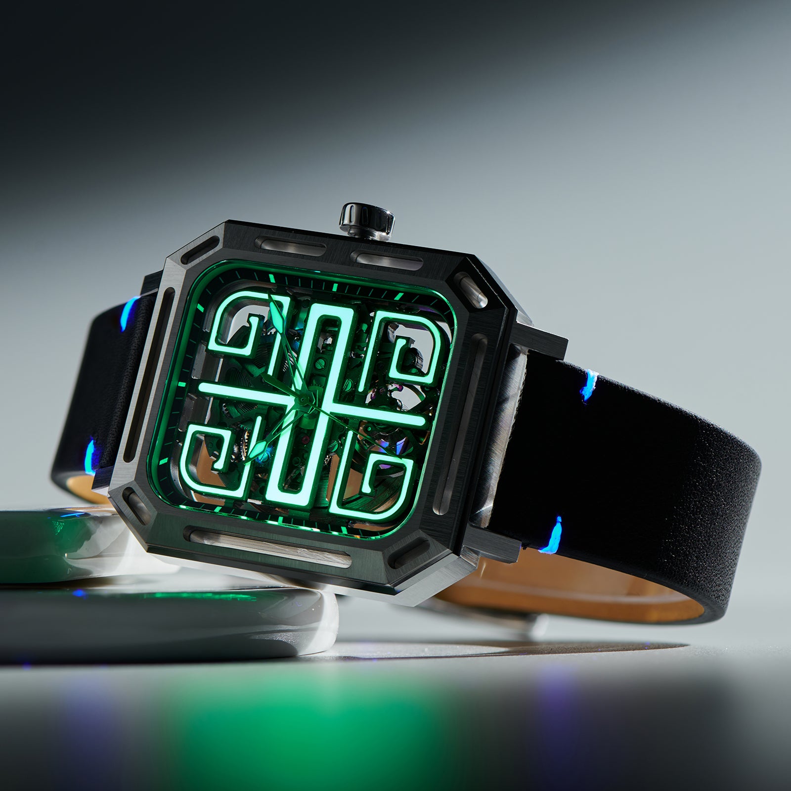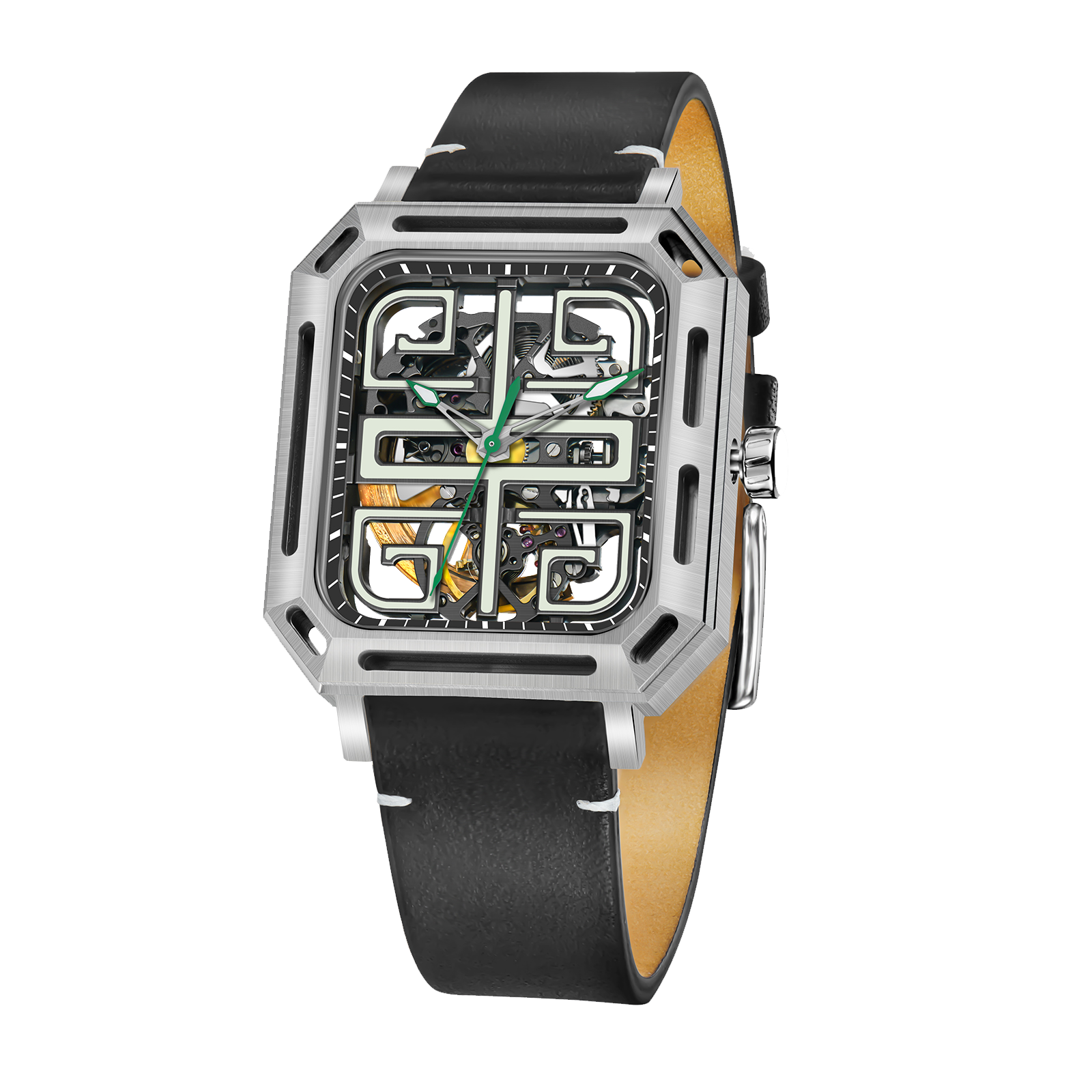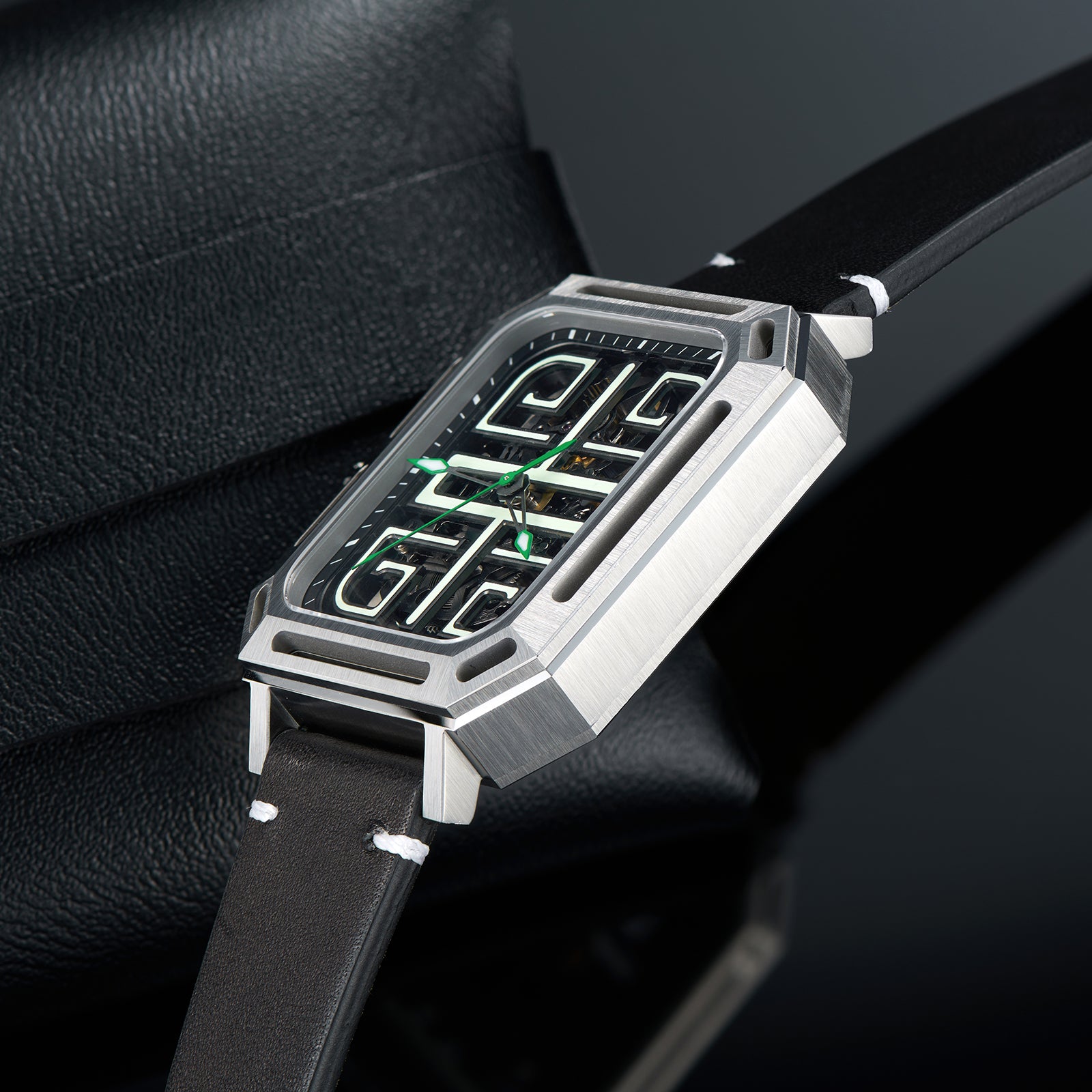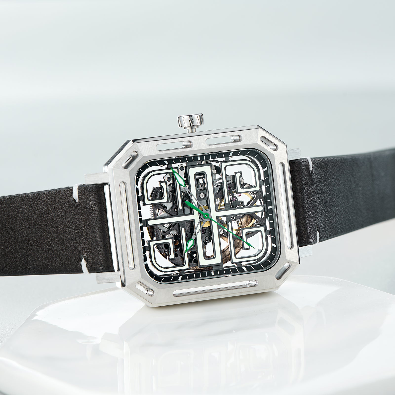 Dial: Green skeleton & Indices And Hands With Luminescent Coating
