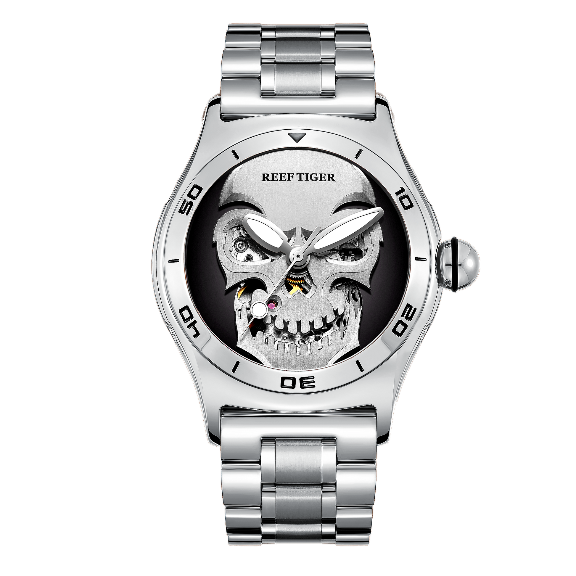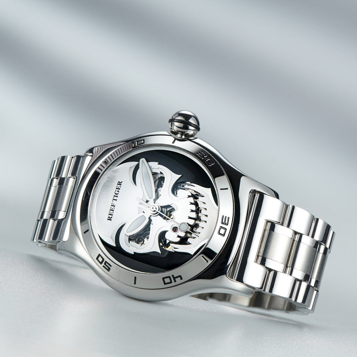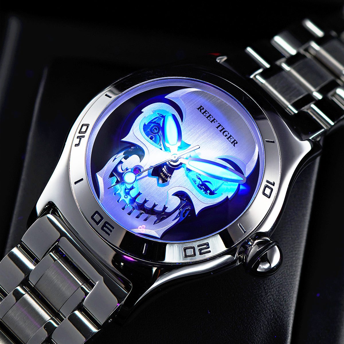 With its unique design, automatic movement, skeleton dial, and impeccable craftsmanship, the Reef Tiger Aurora Skulls Series watch is a must-have for men who appreciate luxury best watches. Elevate your style with this standout watch that combines functionality with a bold and distinctive aesthetic.