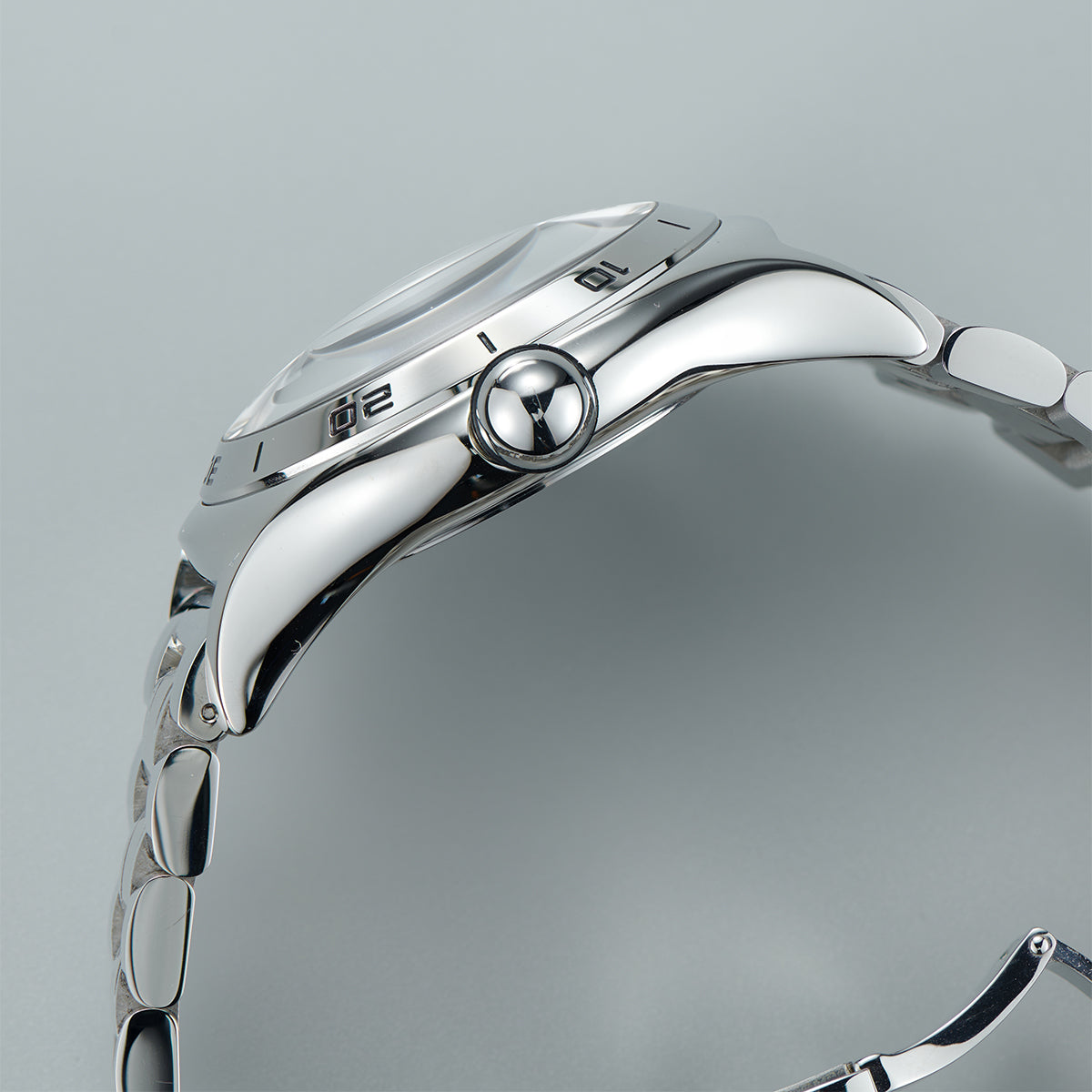 In terms of design details, the watch features a sapphire crystal glass face that provides scratch resistance and enhanced clarity. The strap, also made from 316 stainless steel, complements the overall aesthetic of the timepiece. The bow buckle adds a stylish touch to the watch, making it easy to wear and adjust.