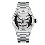 The case of the watch is meticulously crafted from 316 stainless steel, ensuring durability and longevity. With a round shape and a diameter of 44mm, the case houses a striking silver skulls skeleton dial that adds a touch of edginess to the overall design. The dial is powered by the precision ST2503 movement, guaranteeing accurate timekeeping.