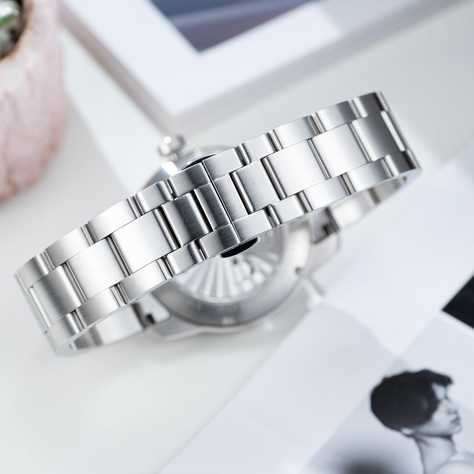 The luxury mens watch dial is not just a visual marvel; it boasts super luminous platinum-plated steel hands, allowing for easy readability day or night. Whether you are dressing for an important meeting or enjoying a nighttime outing, this timepiece ensures you always look your best.