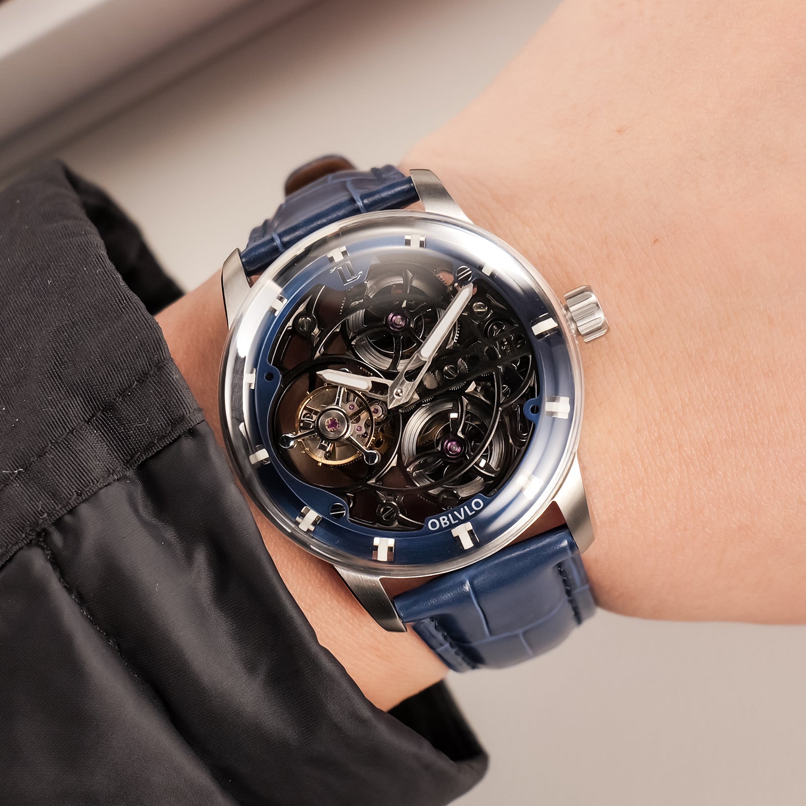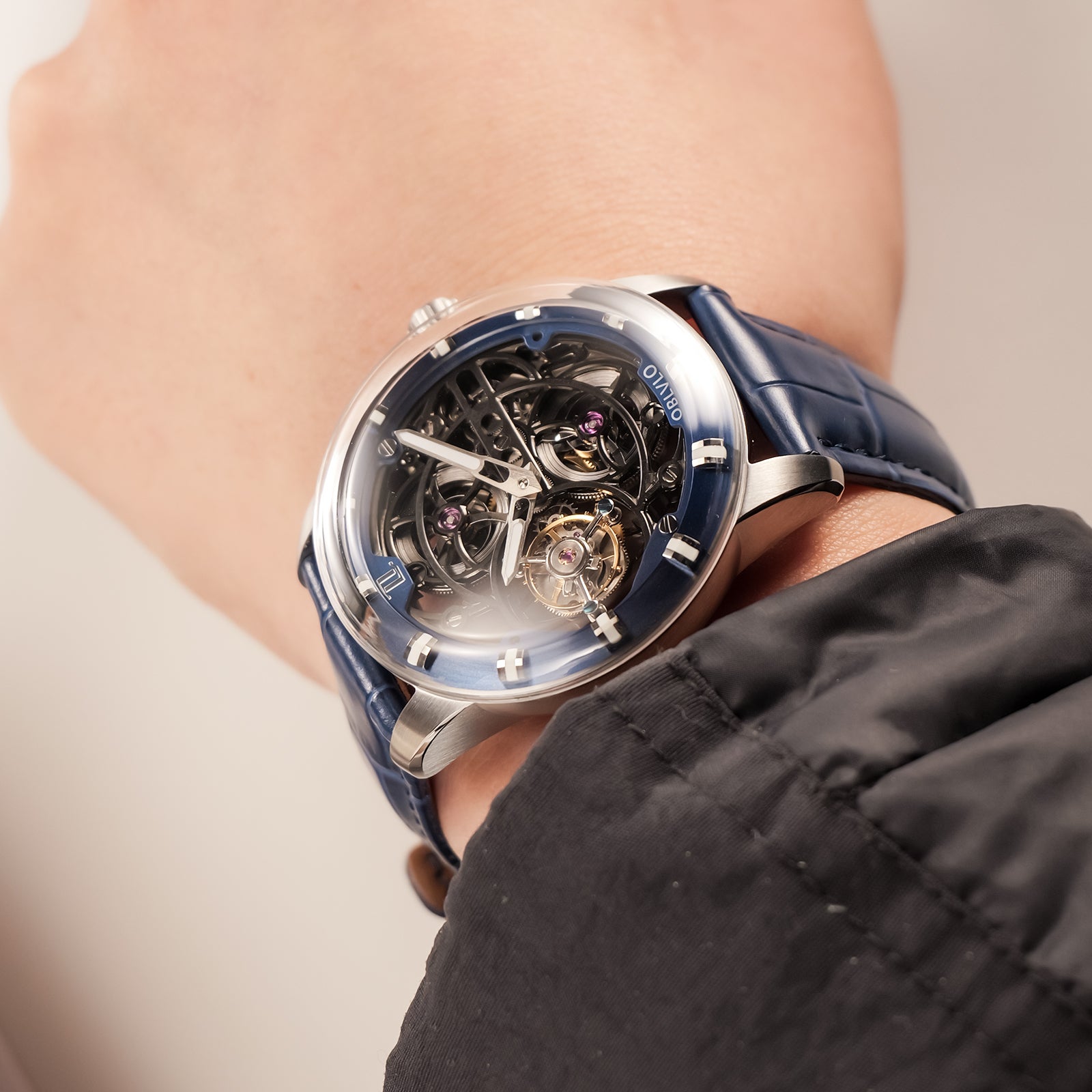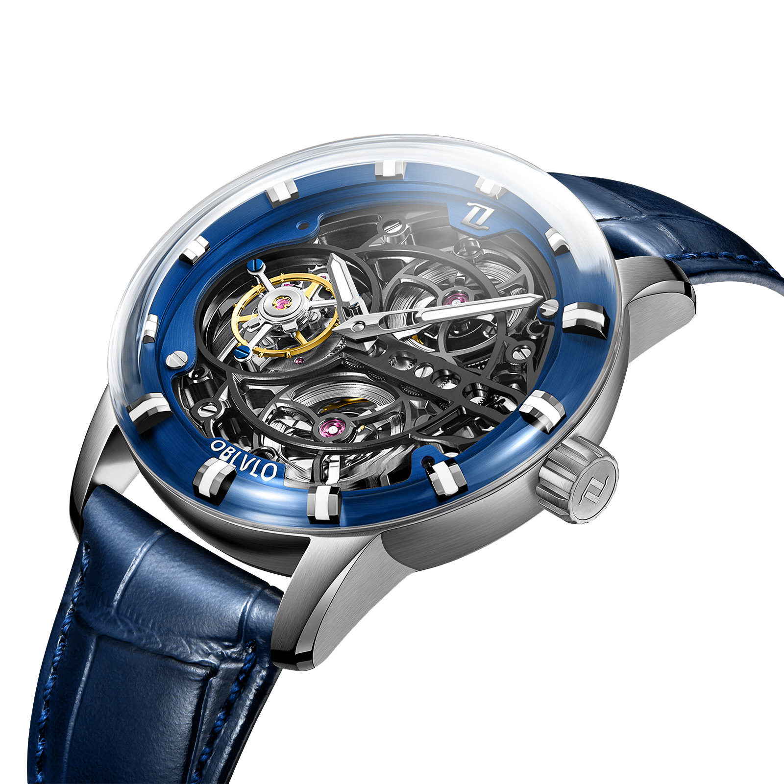 Crafted with a round 316 stainless steel case, the BLVLO IM SK Series exudes durability and modernity. The blue and black skeleton dial, adorned with luminescent coating on the indices and hands, adds a touch of mystery and allure to the timepiece. Powered by an OBL tourbillon movement, this watch is not just a statement piece but a technical marvel.