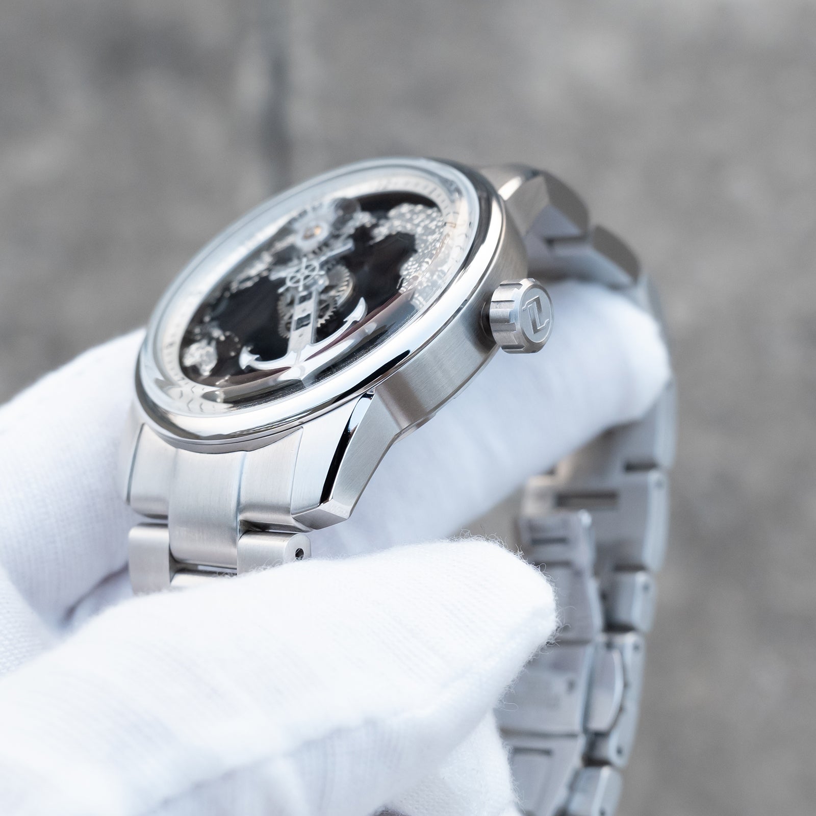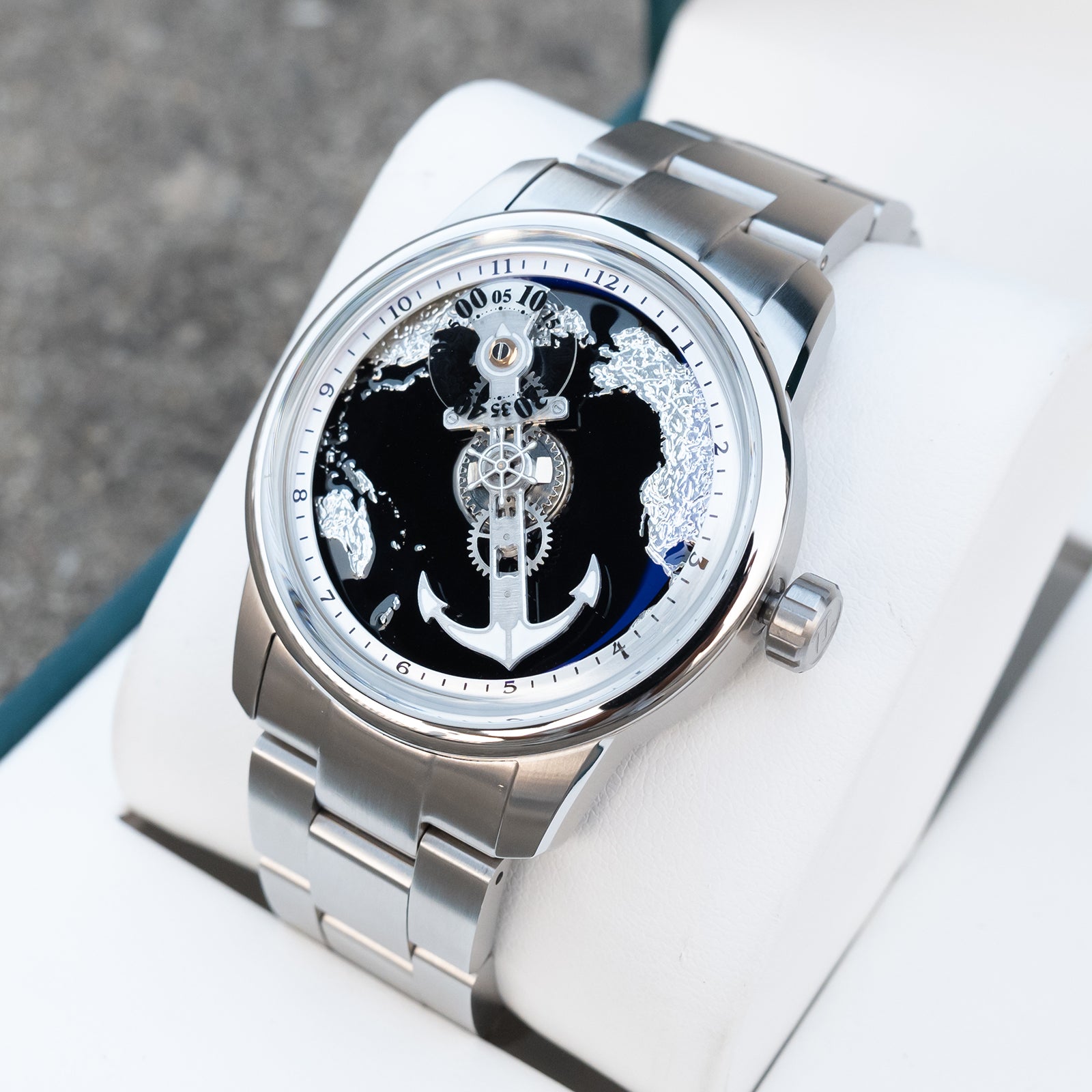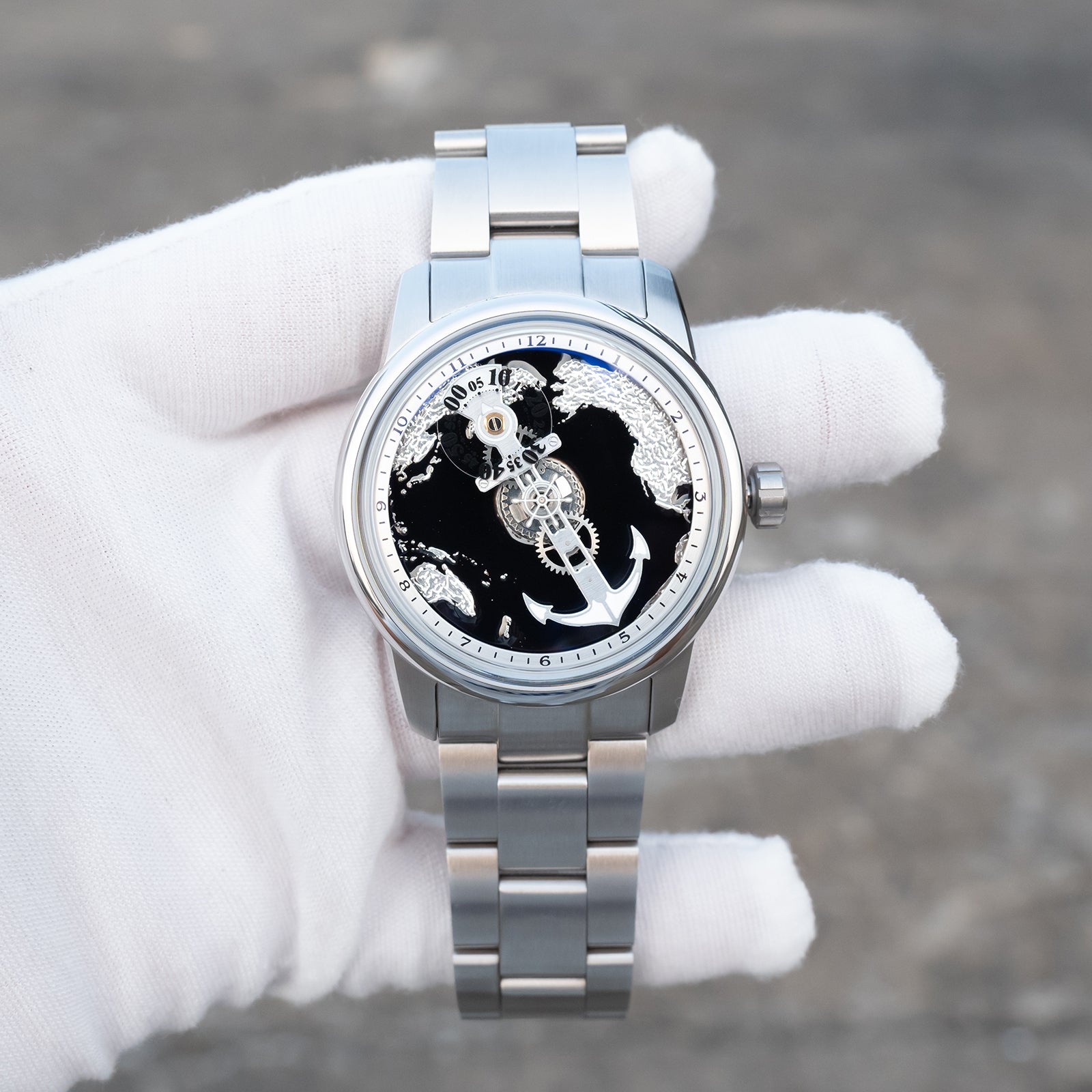 Dial: Use high-grade Black Cold Enamel Dial, Unique Nautical steering wheel and anchor watch hands and super luminous