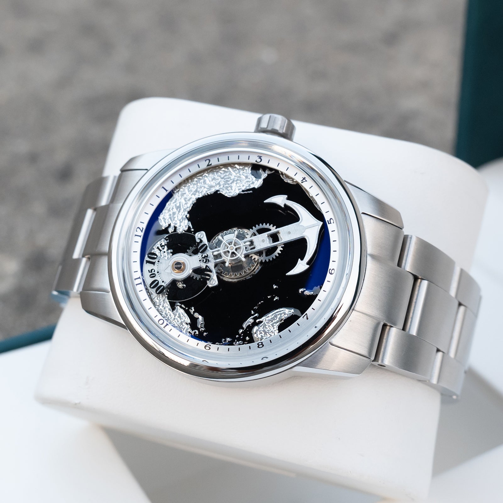 One of the standout features of the OBLVLO JM-Sailing is its high-grade black cold enamel dial. This unique finish not only enhances the overall aesthetic but also brings a luxurious touch that is uncommon in affordable men’s luxury watches. The design incorporates nautical elements, most notably the steering wheel and anchor watch hands, which are further complemented by super luminous technology – enabling easy readability in varied lighting conditions.