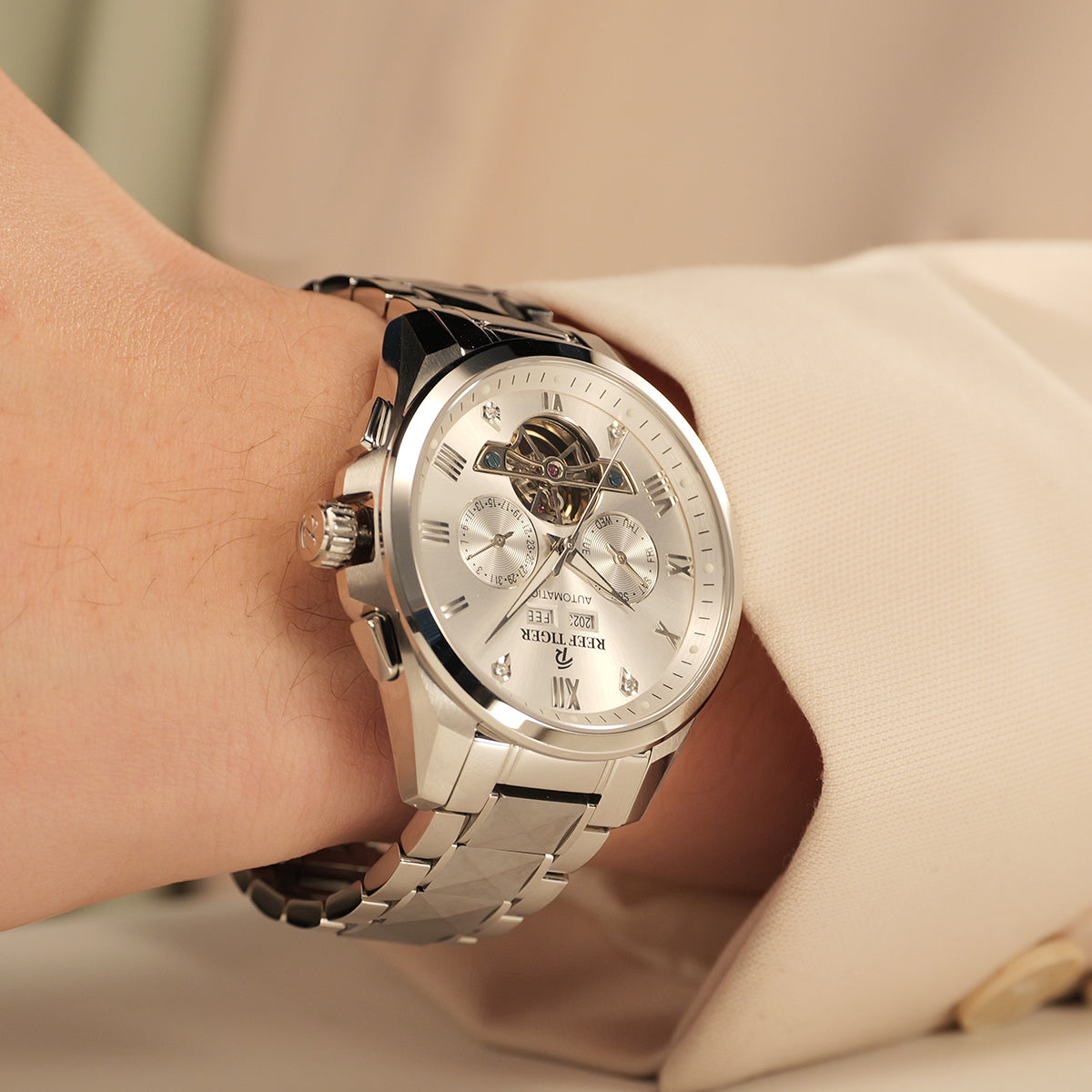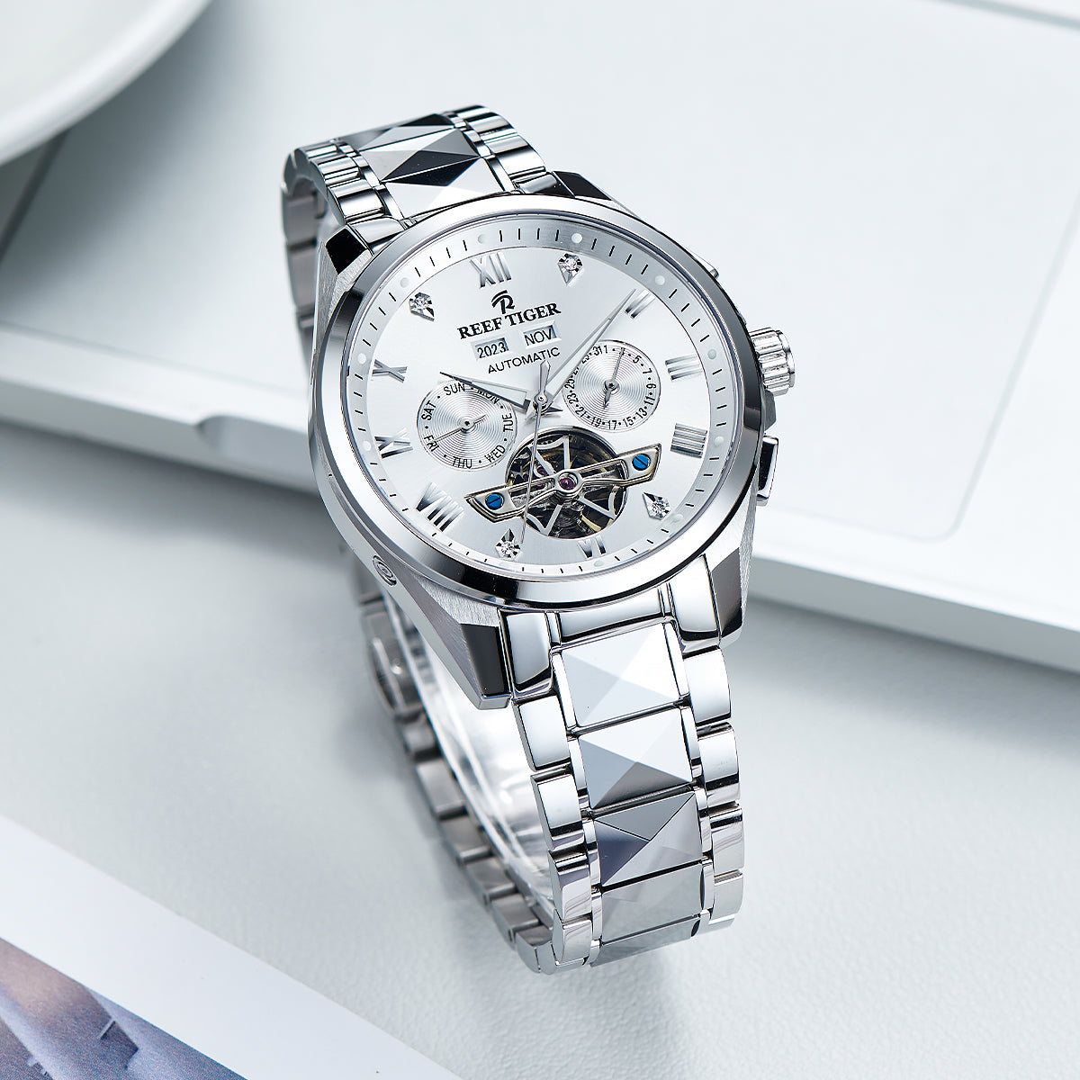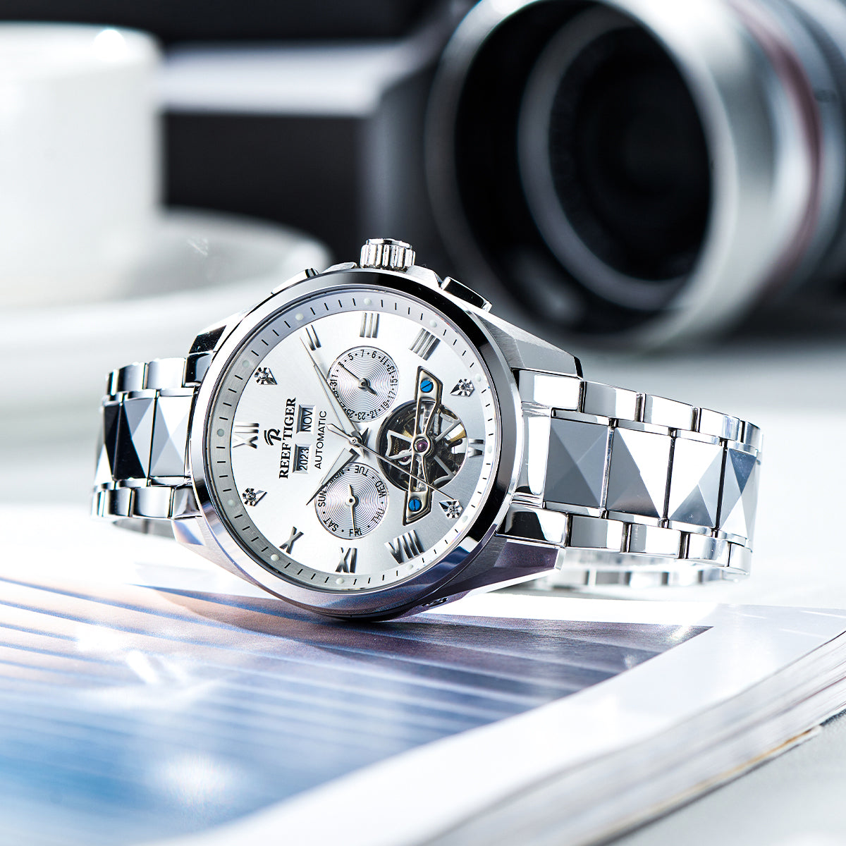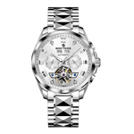 Dial Design: White Dial, Watch face is designed with year, month, date, day, luminous hands display & tourbillon style dial.
