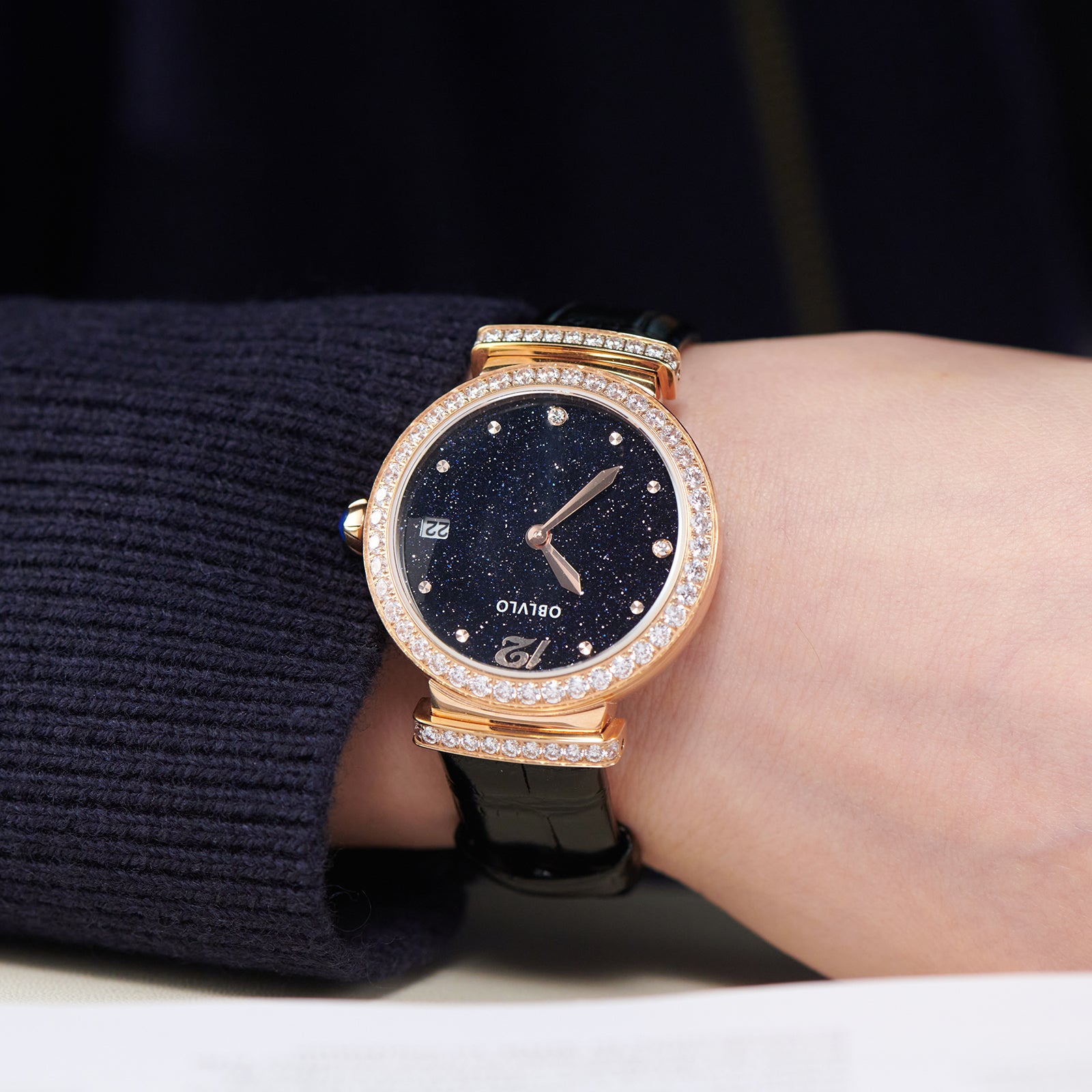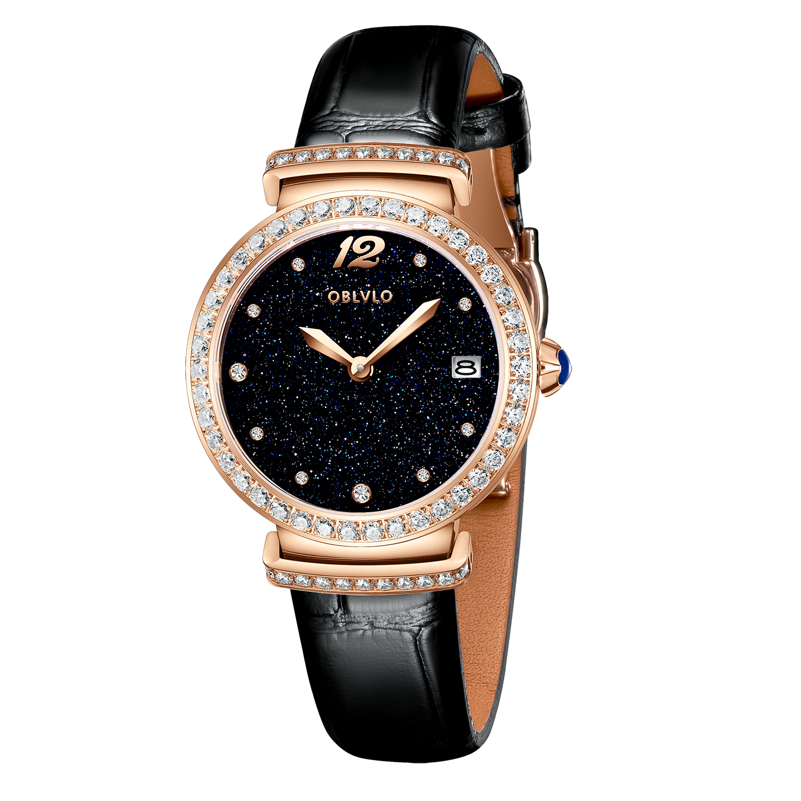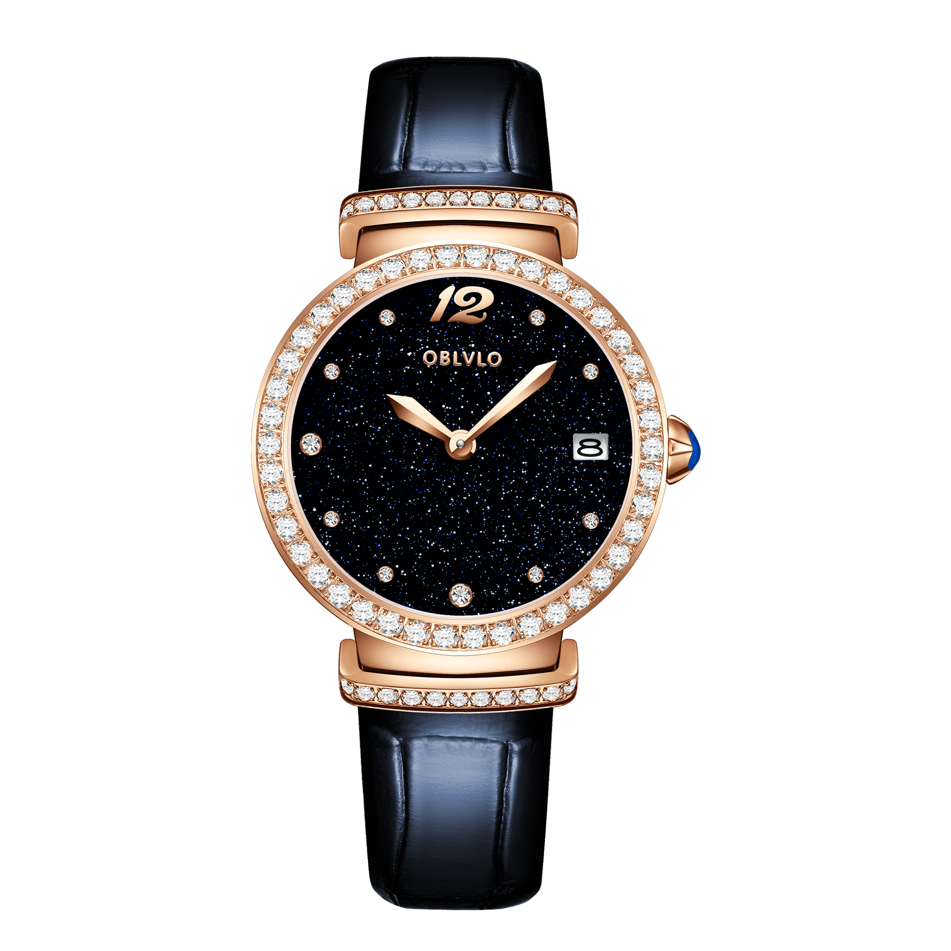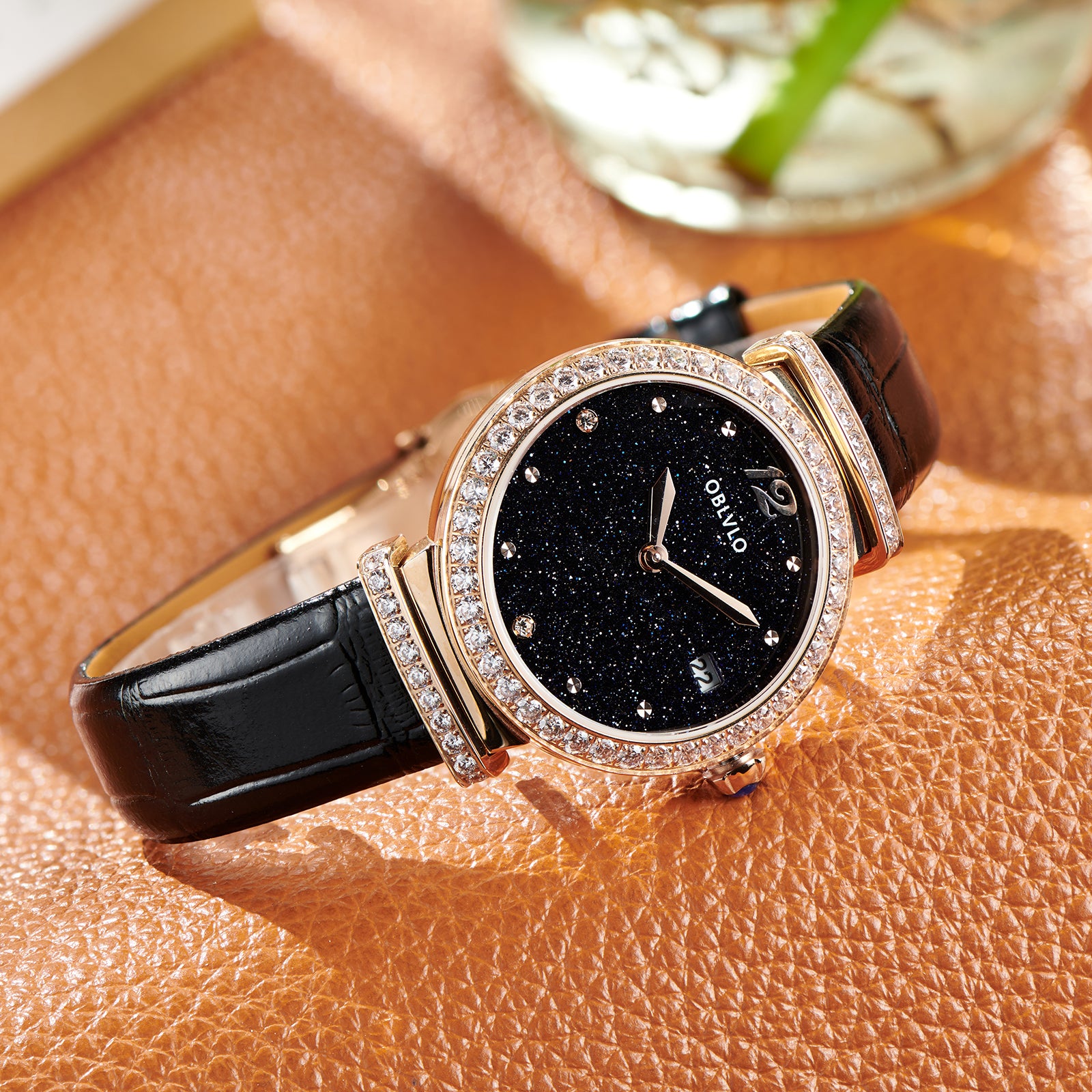 OBLVLO BW-S Rose Gold Starry Sky Dial Quartz Watches - Genuine Leather Strap Watches for Women