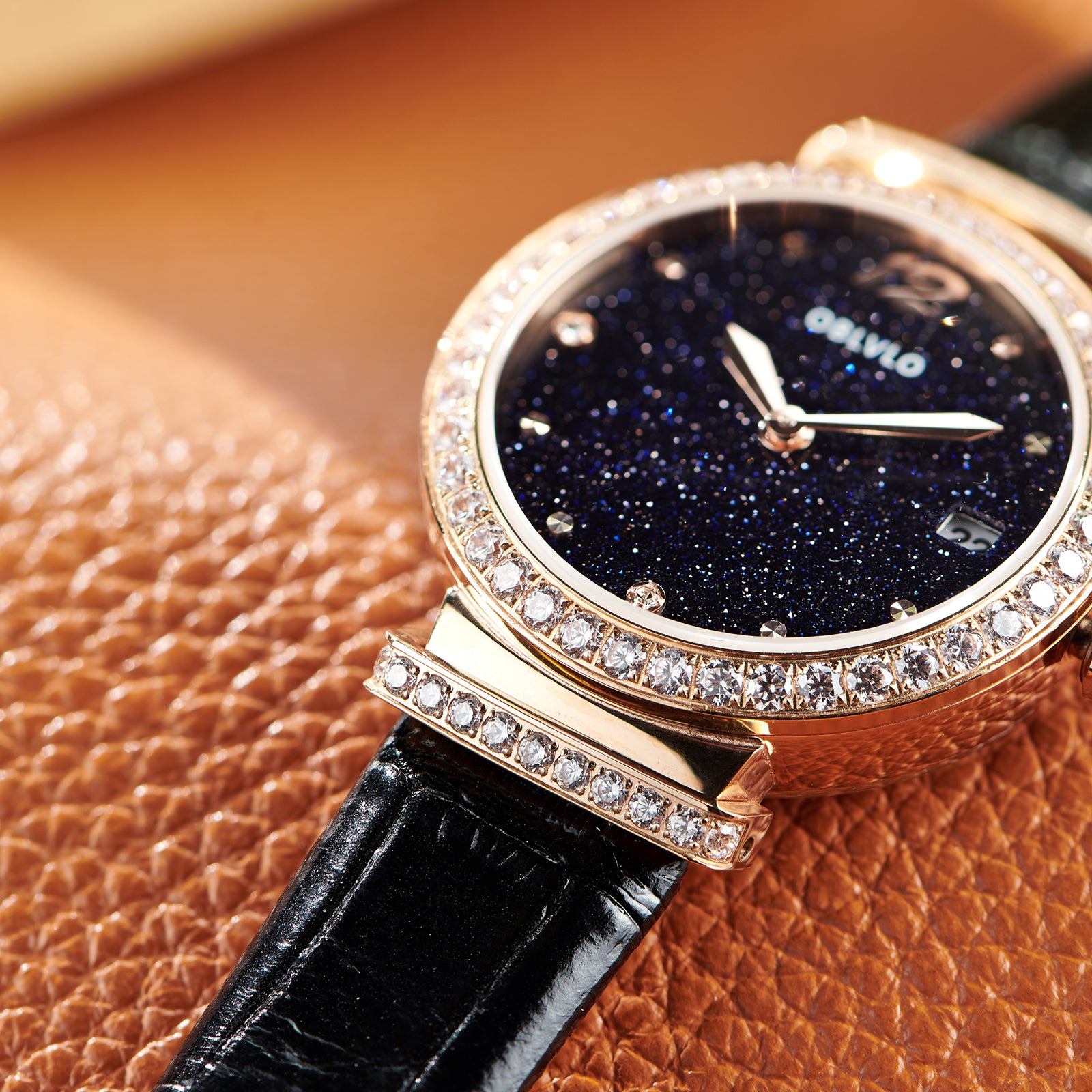 Dial Design: Fashion design, bezel set with crystals diamond, paired with a romantic starry sky dial.