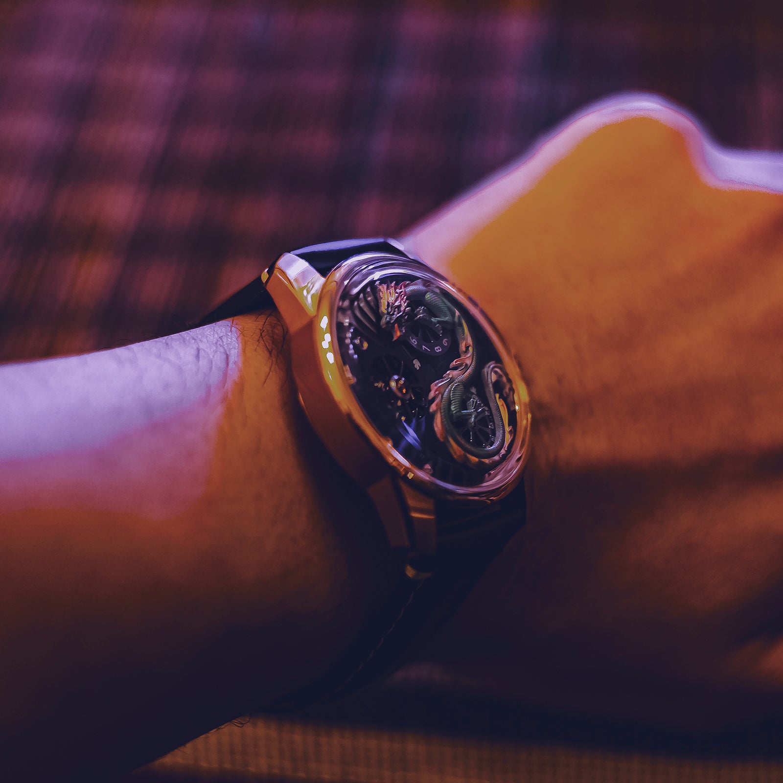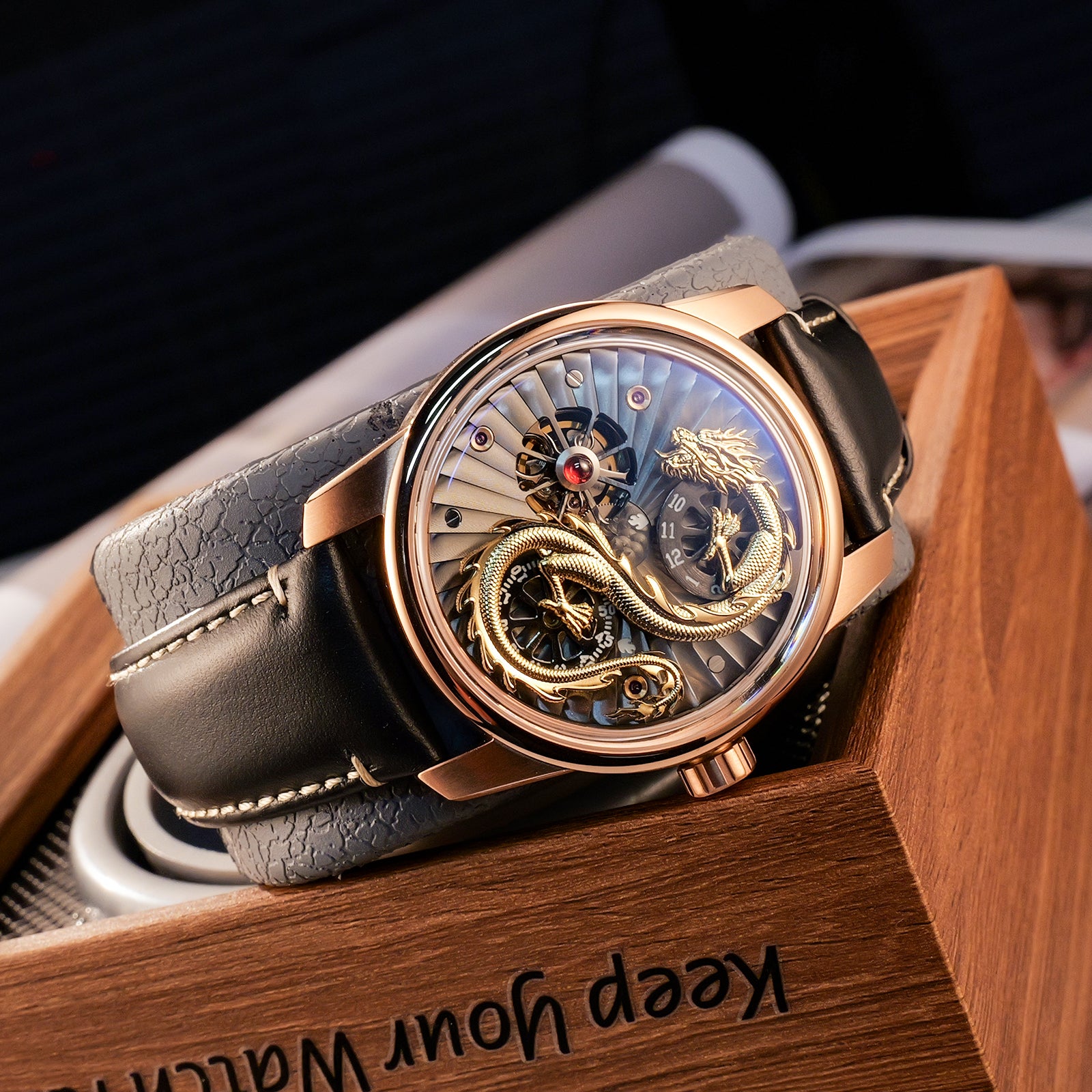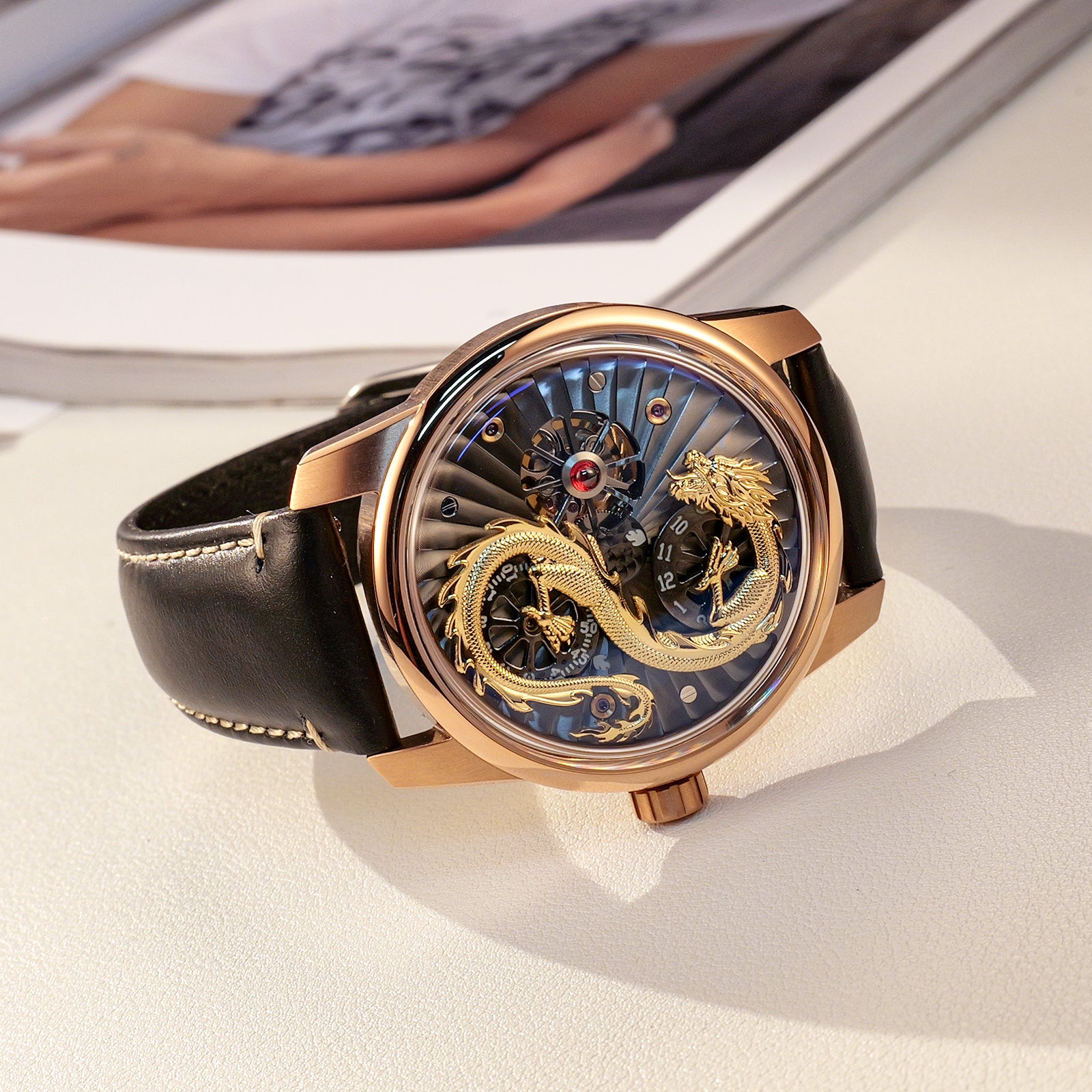Dial:Black Unique Skeleton Dial & Gold Chinese Dragon dial