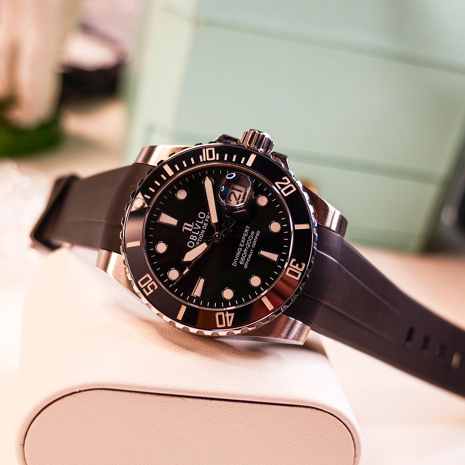 These OBLVLO DM-SIM Series watches often showcase higher-quality materials, such as solid stainless steel cases with Black Ceramic Bezel accents and sapphire crystals for improved scratch resistance. They may also incorporate additional complications like date displays or rotating bezels.