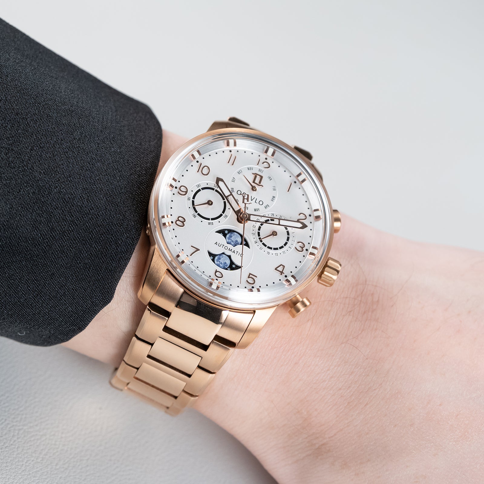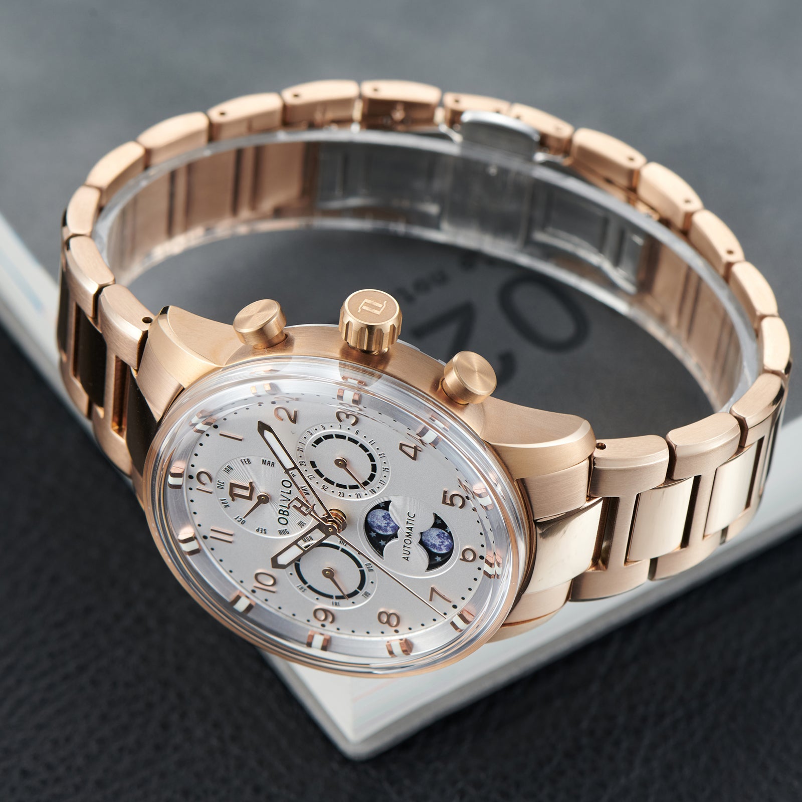 The OBLVLO IM MUT-MP Rose Gold Moonphase Automatic Watch truly stands out as a timeless piece that effortlessly blends vintage appeal with modern sophistication. Whether you're a collector of dress watches or a connoisseur of automatic timepieces, this watch is sure to make a bold statement on your wrist.