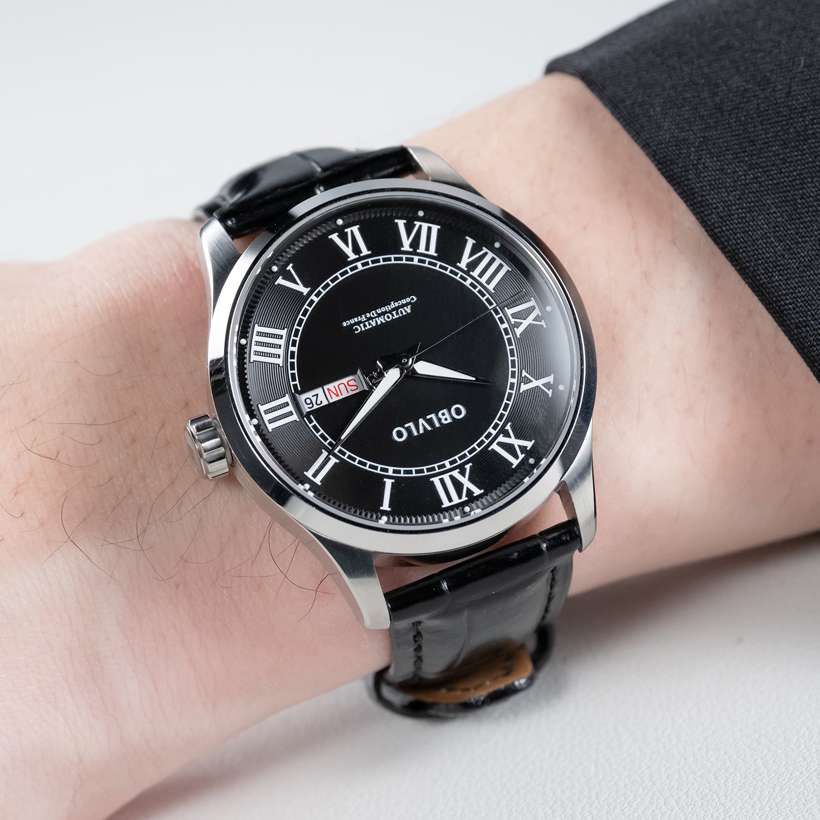 Dial Design: The Black dial features a day date display and is finished with a high-grade satin brushed and polished surface. Focusing on classic, fashionable, casual, French romantic style.