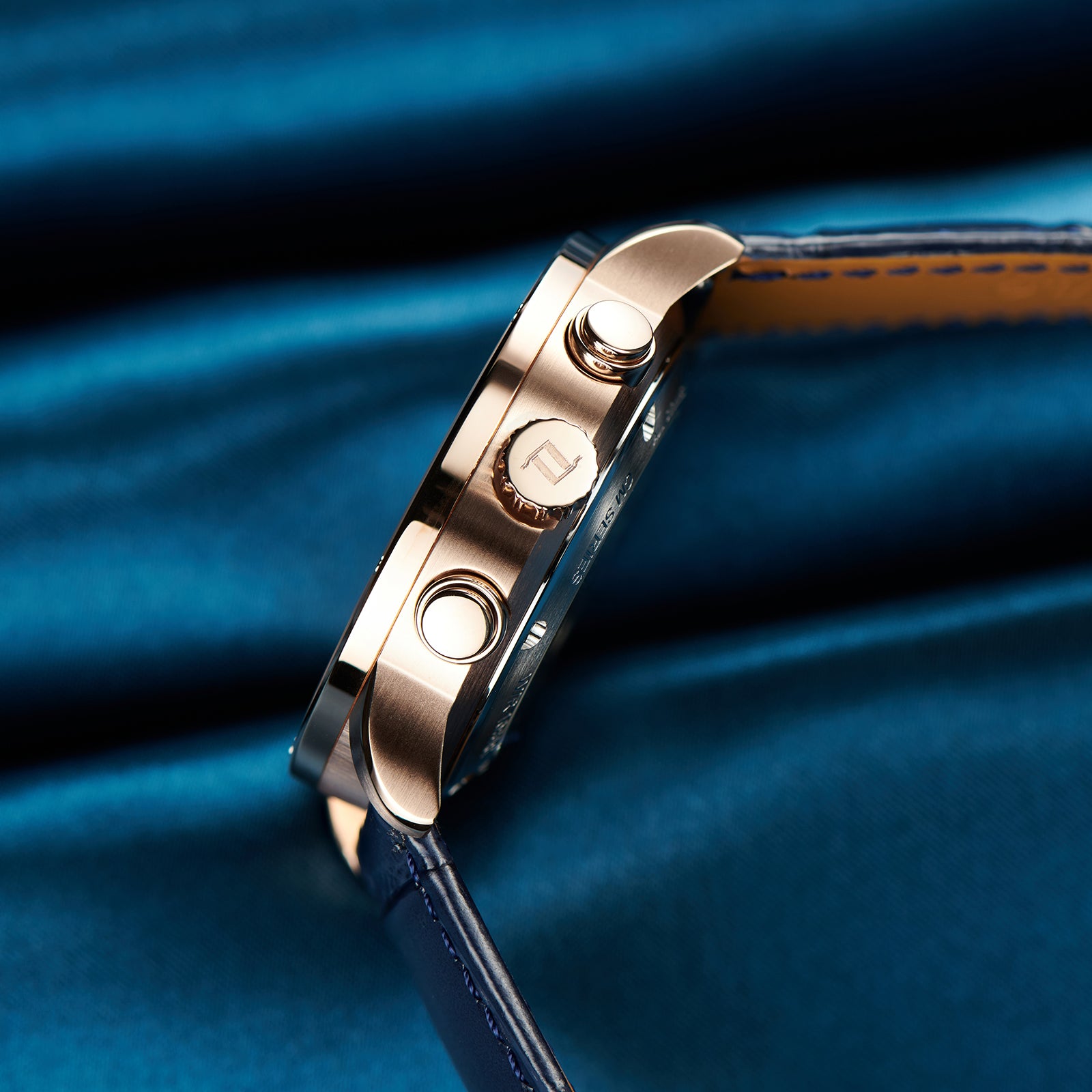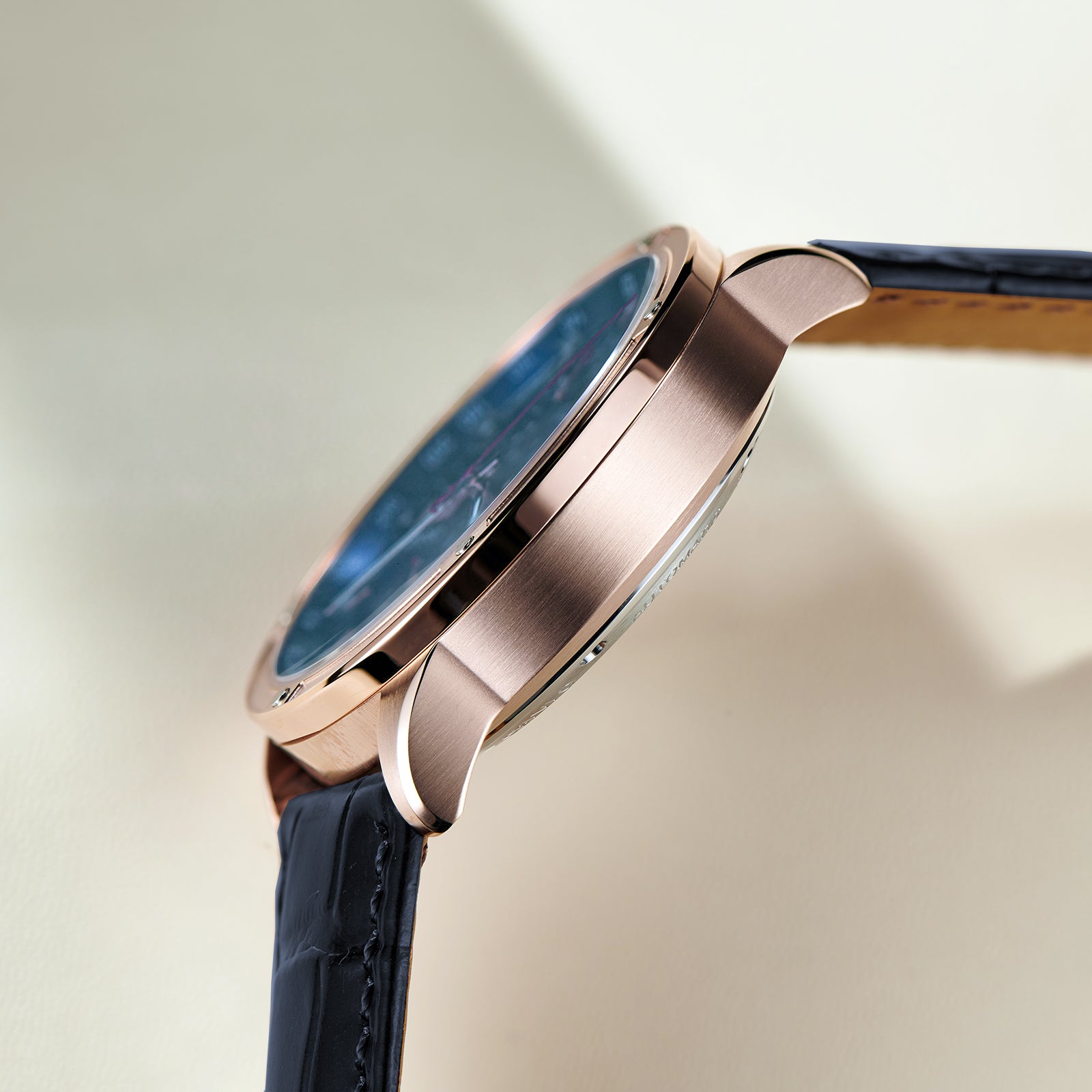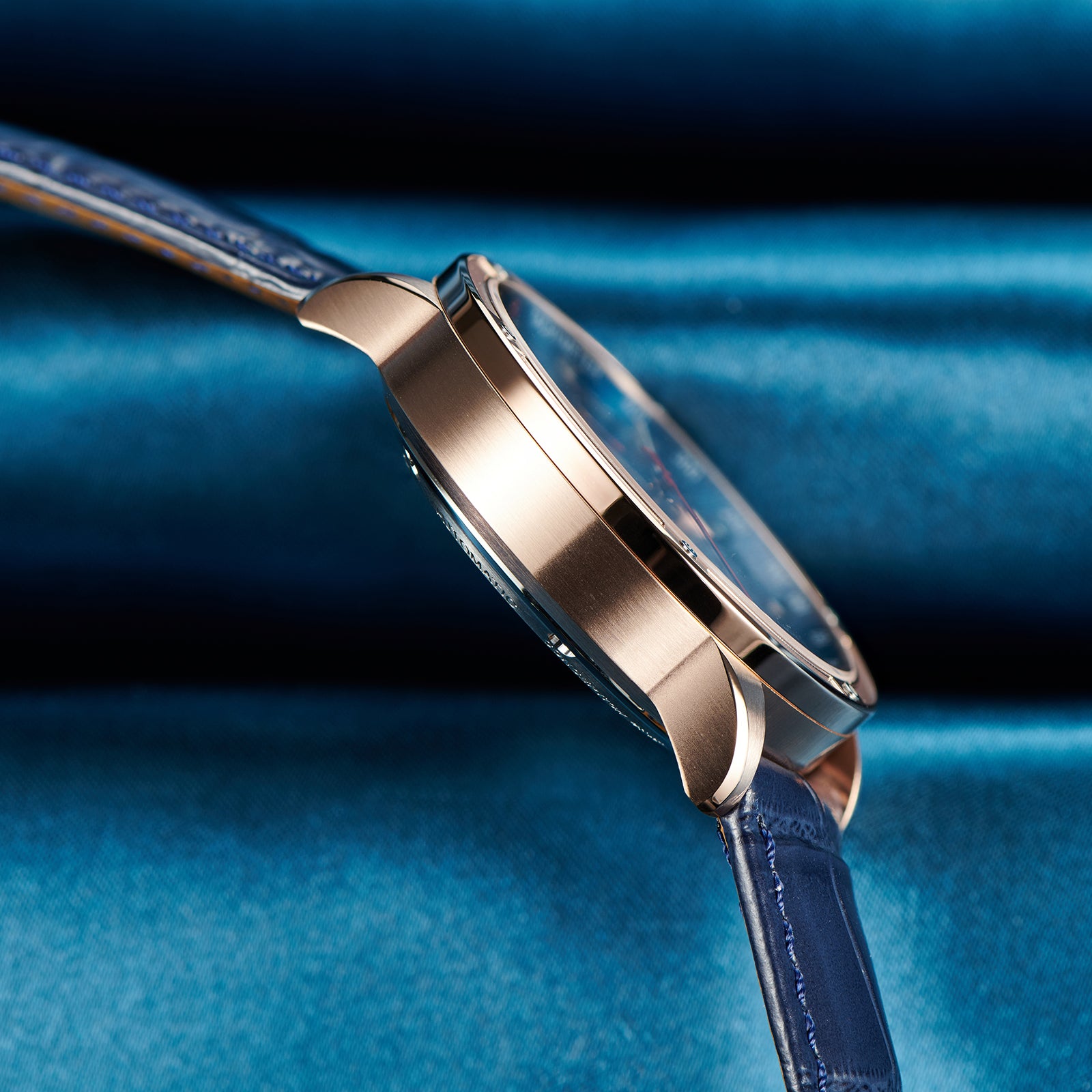 Dial:Blue dial,rose gold indices and hands with luminescent coating