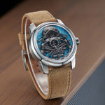 Dial:Blue Guilloché Dial, Unique Skeleton Mechanical & Guilloché dials add depth and texture to the surface of the dials. This depth creates visual contrast as light plays off the engraved patterns.