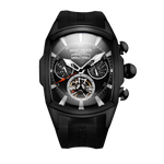 The Model No. RGA3069 boasts a distinctive tonneau case shape crafted from durable 316 Stainless Steel plated with Black PVD. This sleek design is further accentuated by a striking Black Skeleton dial and hands, enhanced with a luminescent coating for optimal visibility in any lighting condition.