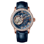 Dial Design: Blue & Rose Gold Dial, high-grade satin brushed & polished, and luxury skeleton tourbillon style dial.