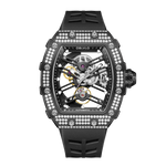The OBLVLO XM XSK Series features a striking tonneau case made of 316 stainless steel, plated with black PVD, and adorned with a stunning Swarovski crystal white diamonds bezel. The case shape exudes a sense of sophistication and modernity, making it a standout piece in any collection of cool watches.