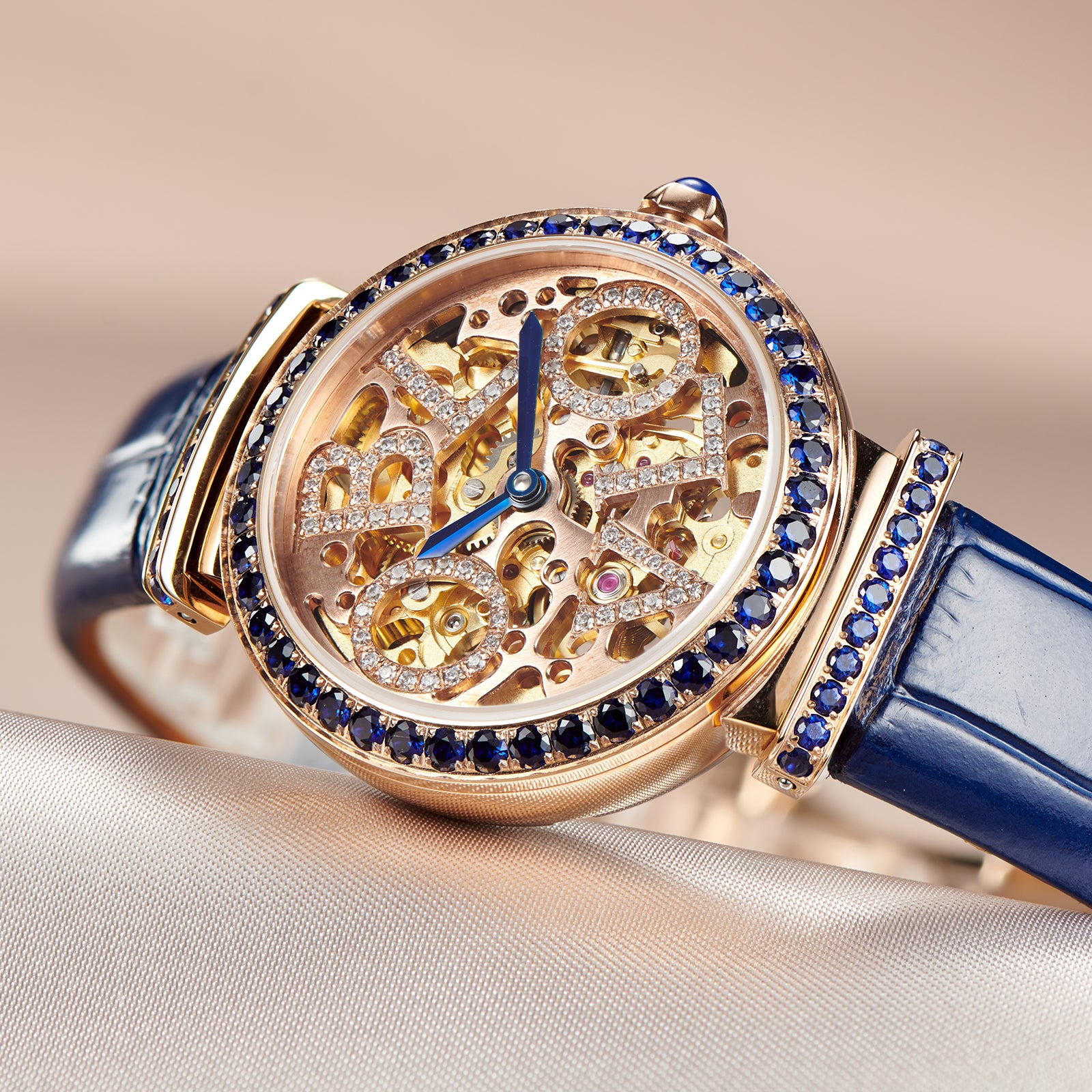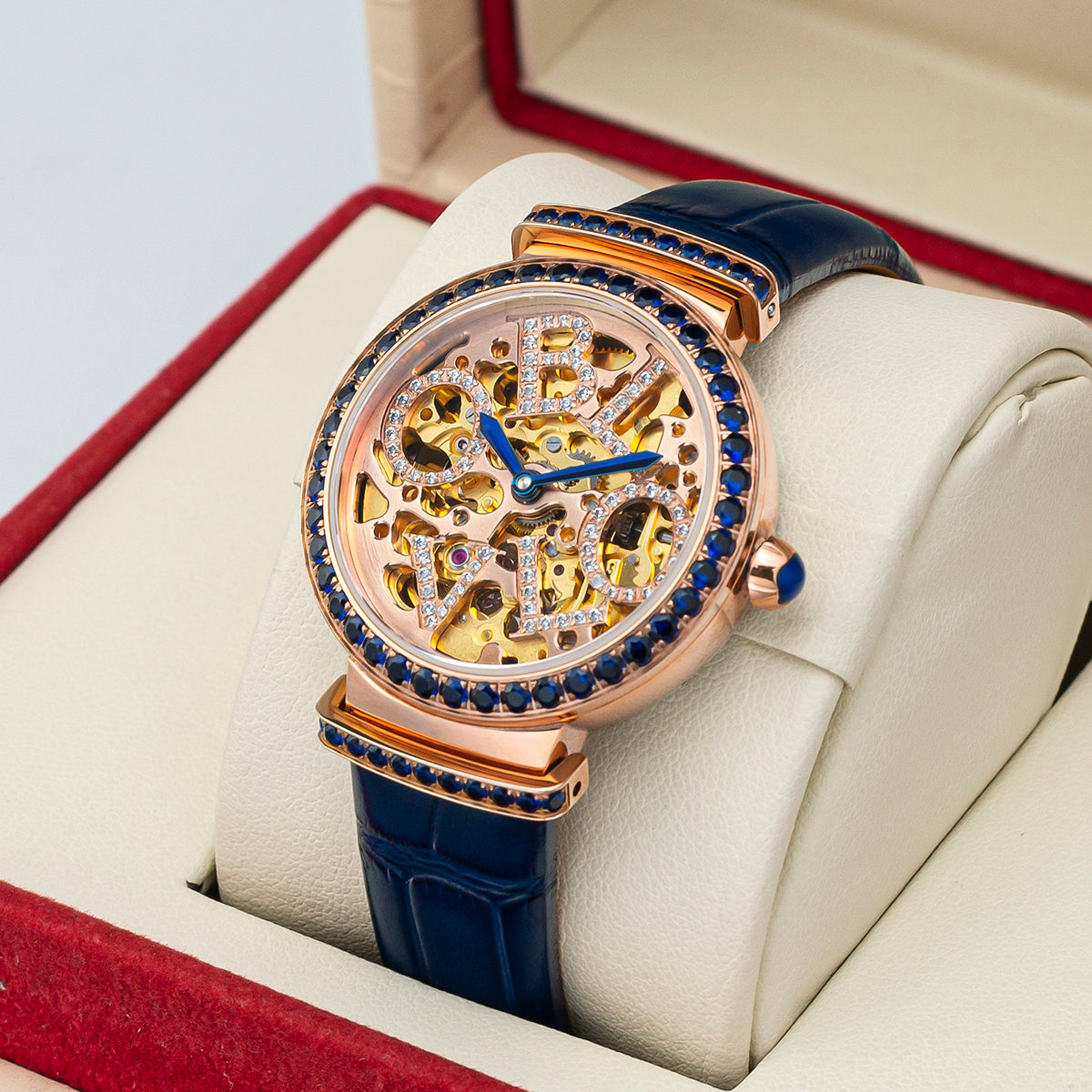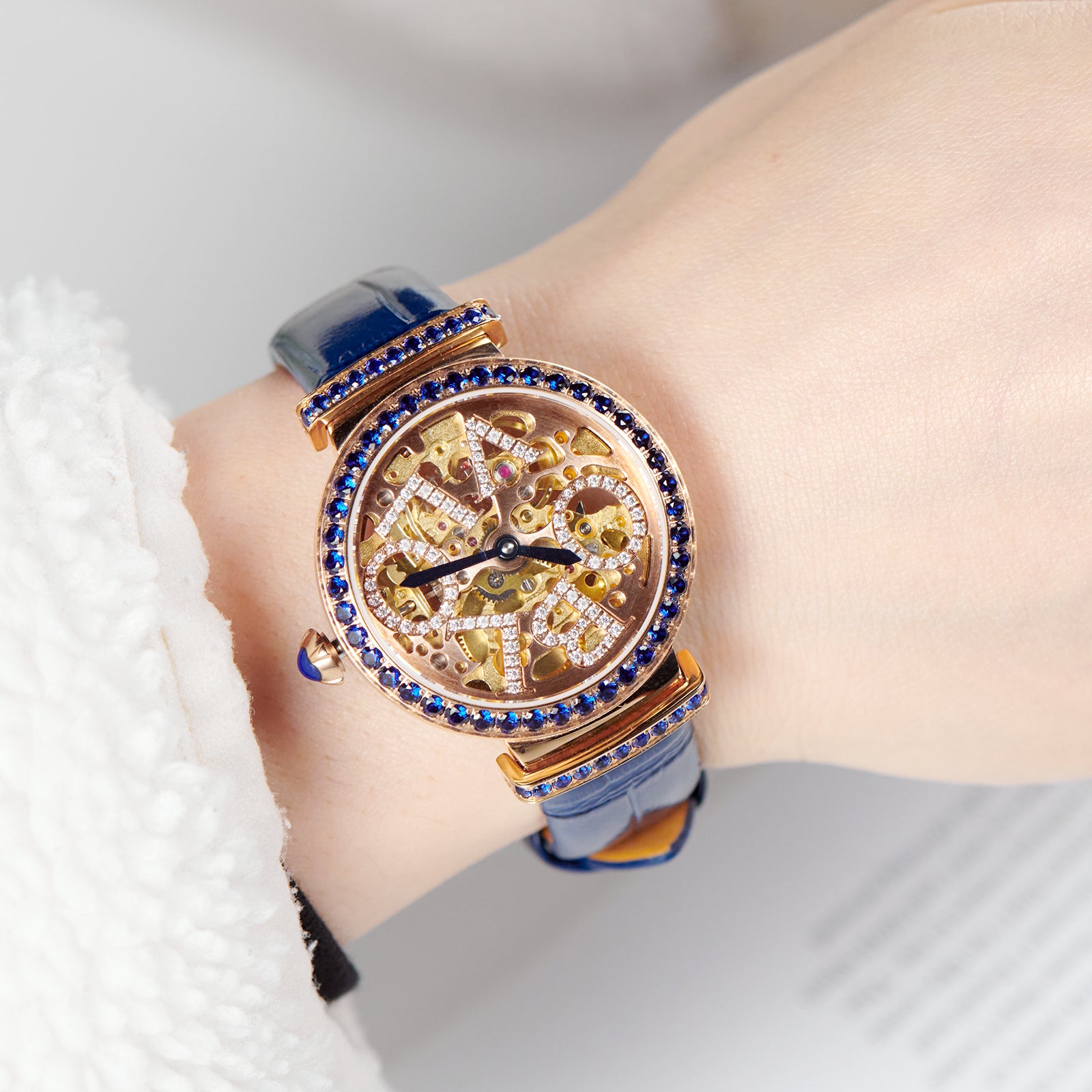 These 34mm ladies watches are adorned with carefully selected blue swarovski crystal diamonds, adding a touch of sophistication and brilliance. The blue diamonds may be set on the dial, bezel, or bracelet, enhancing the watch's aesthetic appeal.