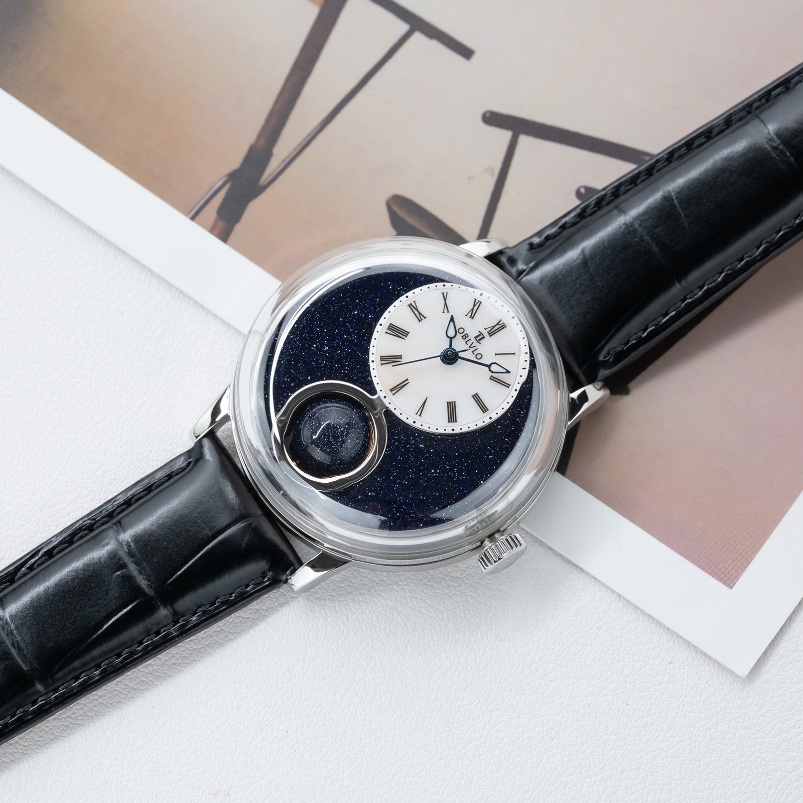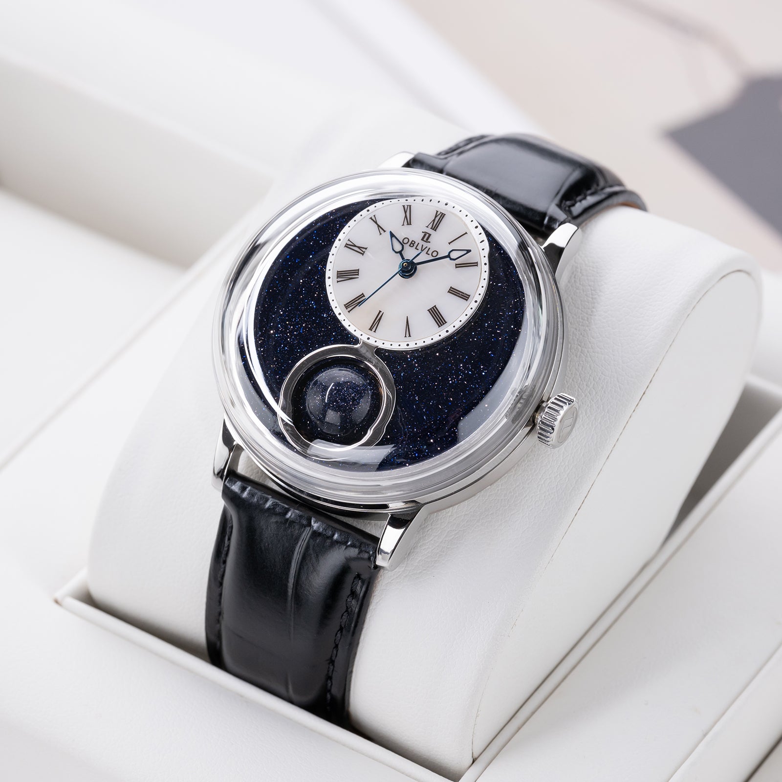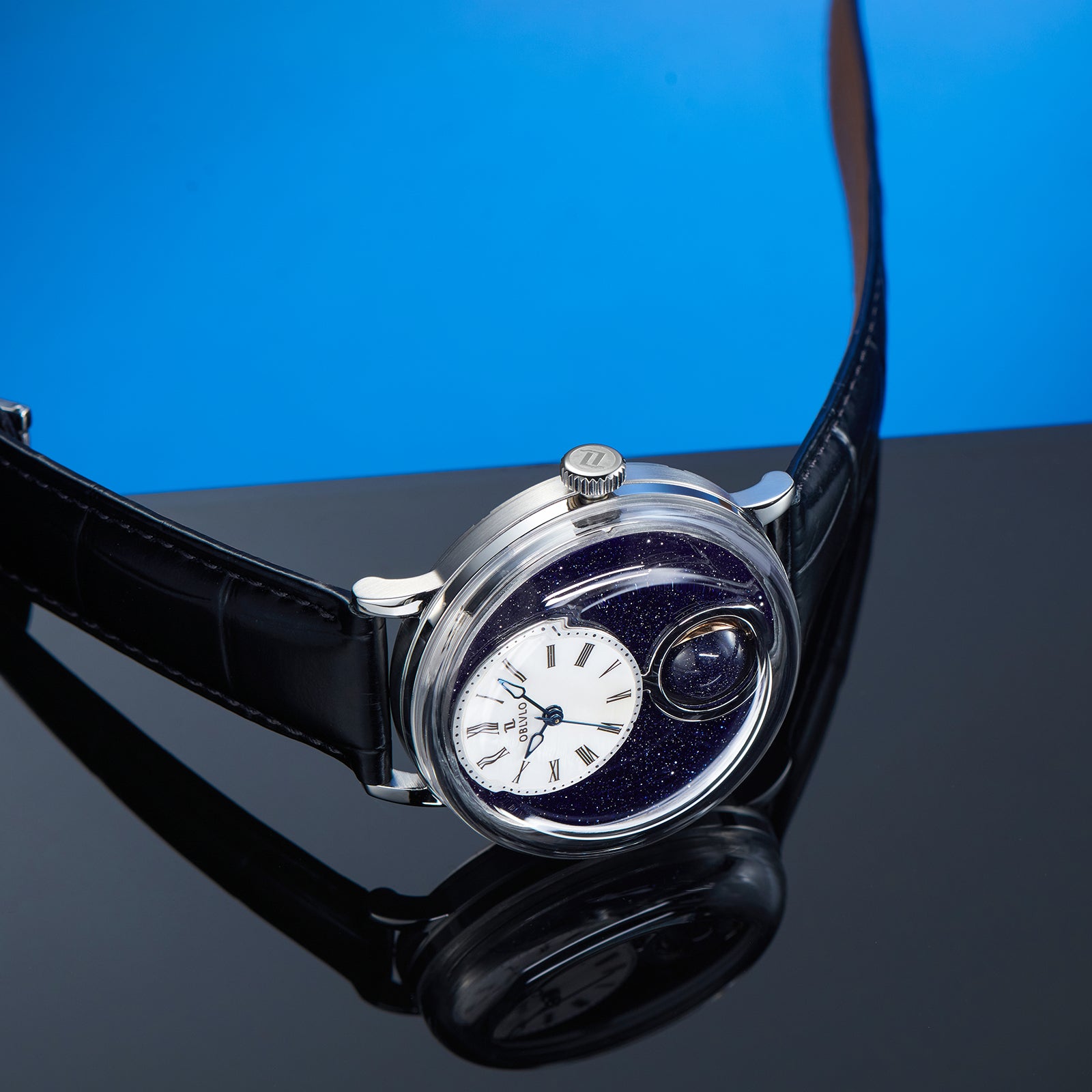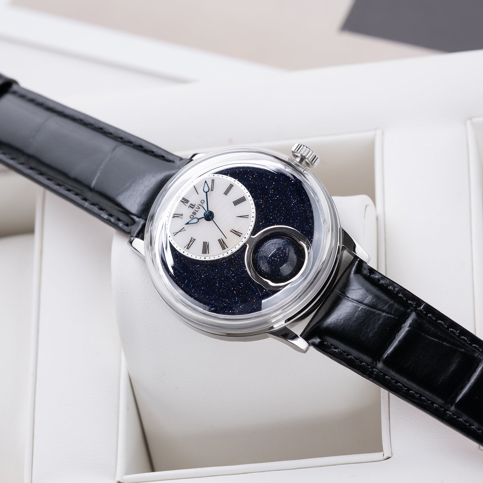 Dial Design: Starry Sky (Aventurine Dial) , Based on the deep starry sky, embellished with shimmering textures, simulating the milky way at night. Every time I bow my head, I look up at the universe. 24-hour bead chain linkage interpret the rhythmof star orbit.