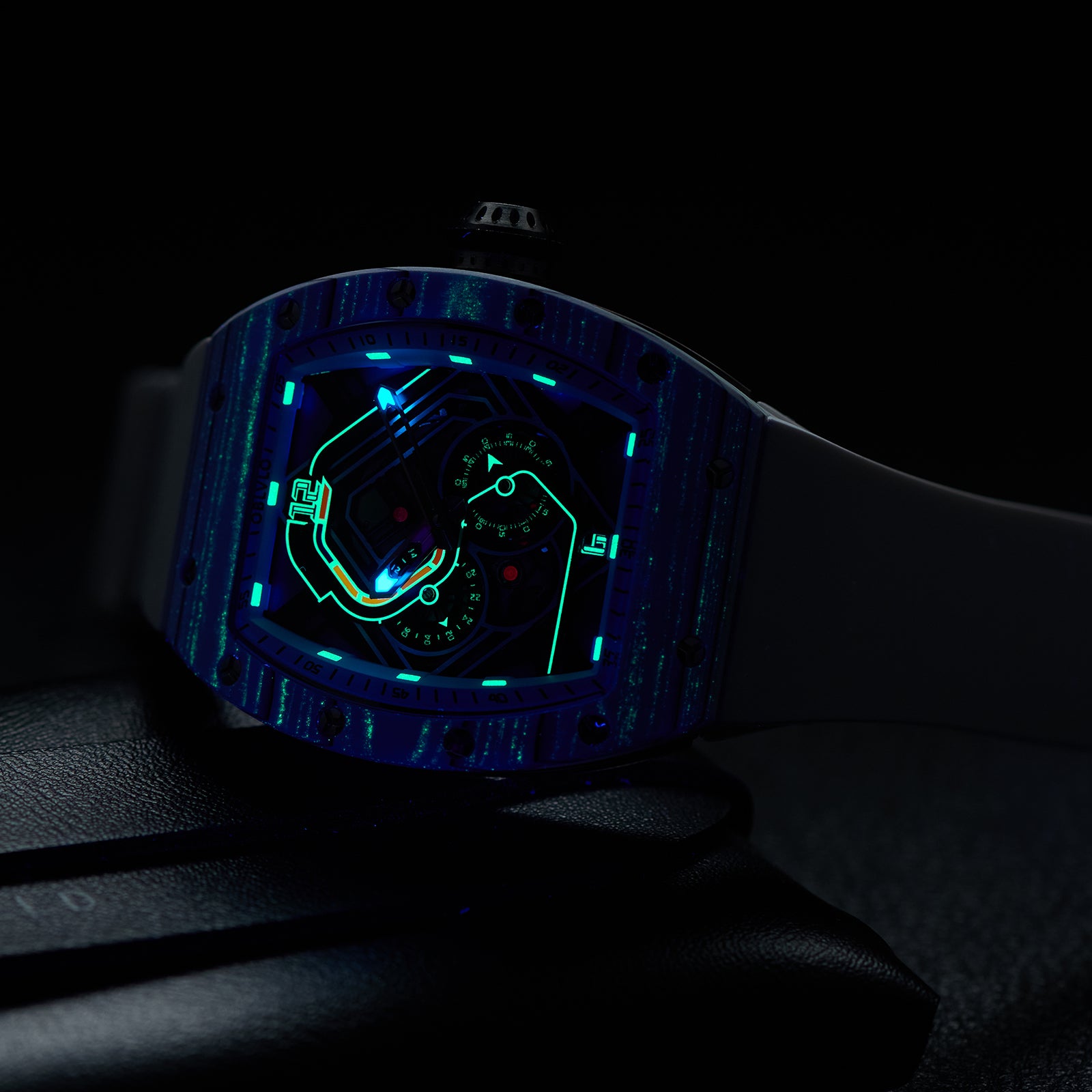 Dial Design: XM-RACING reveals the art of the Japanese 82S7 movement through its skeleton track dial design. A scale is marked around the outer part of the dial or inner bezel – enhancing the classic racing-style aesthetic!As well as an aesthetic that pays homage to the fast and furious world of motorsport.