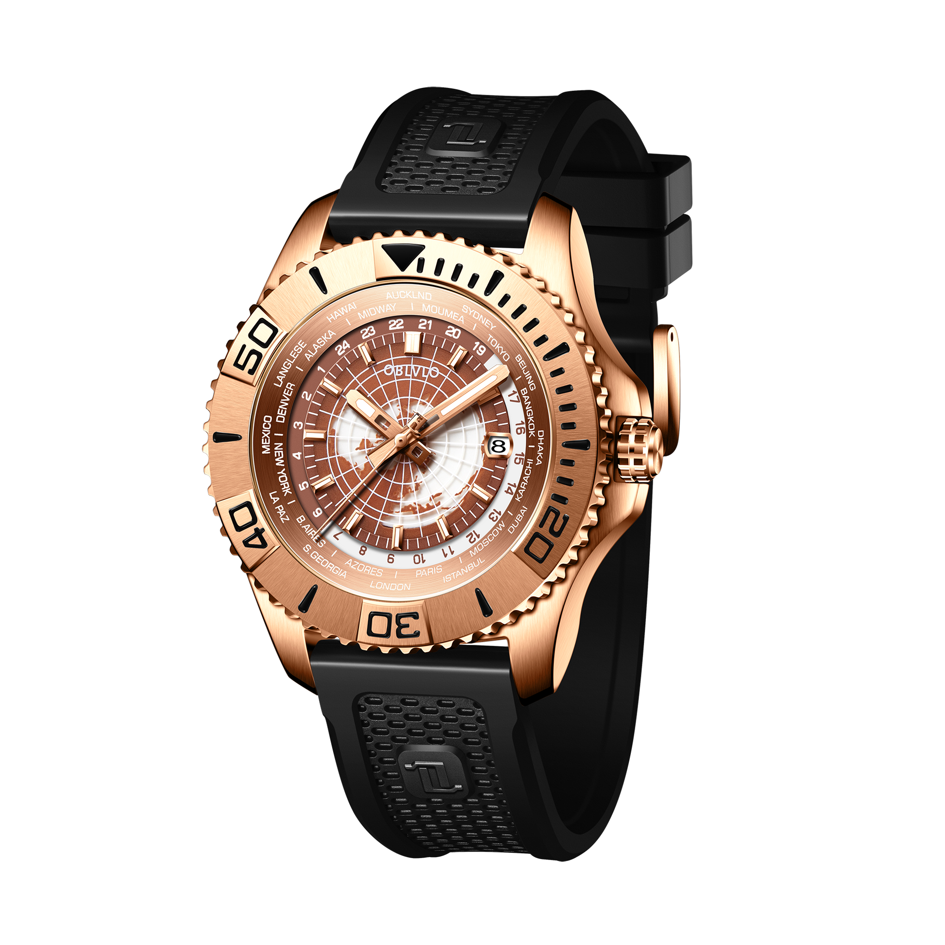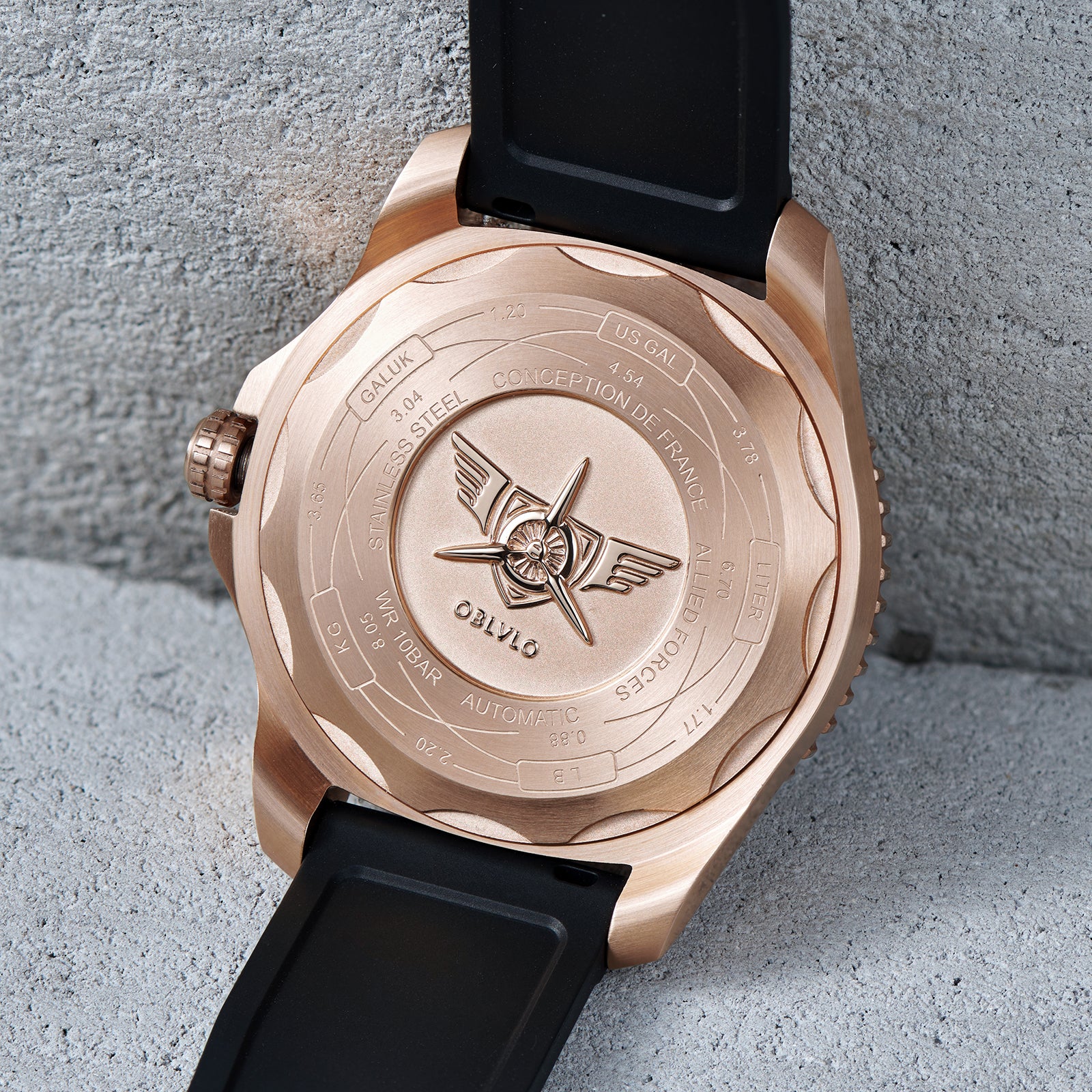 The OBLVLO BM Series Rose Gold Automatic Military watch offers an unparalleled level of visual appeal and sophistication. With its intricate Military design and sports mechanical movements, this timepiece becomes a work of art on your wrist.