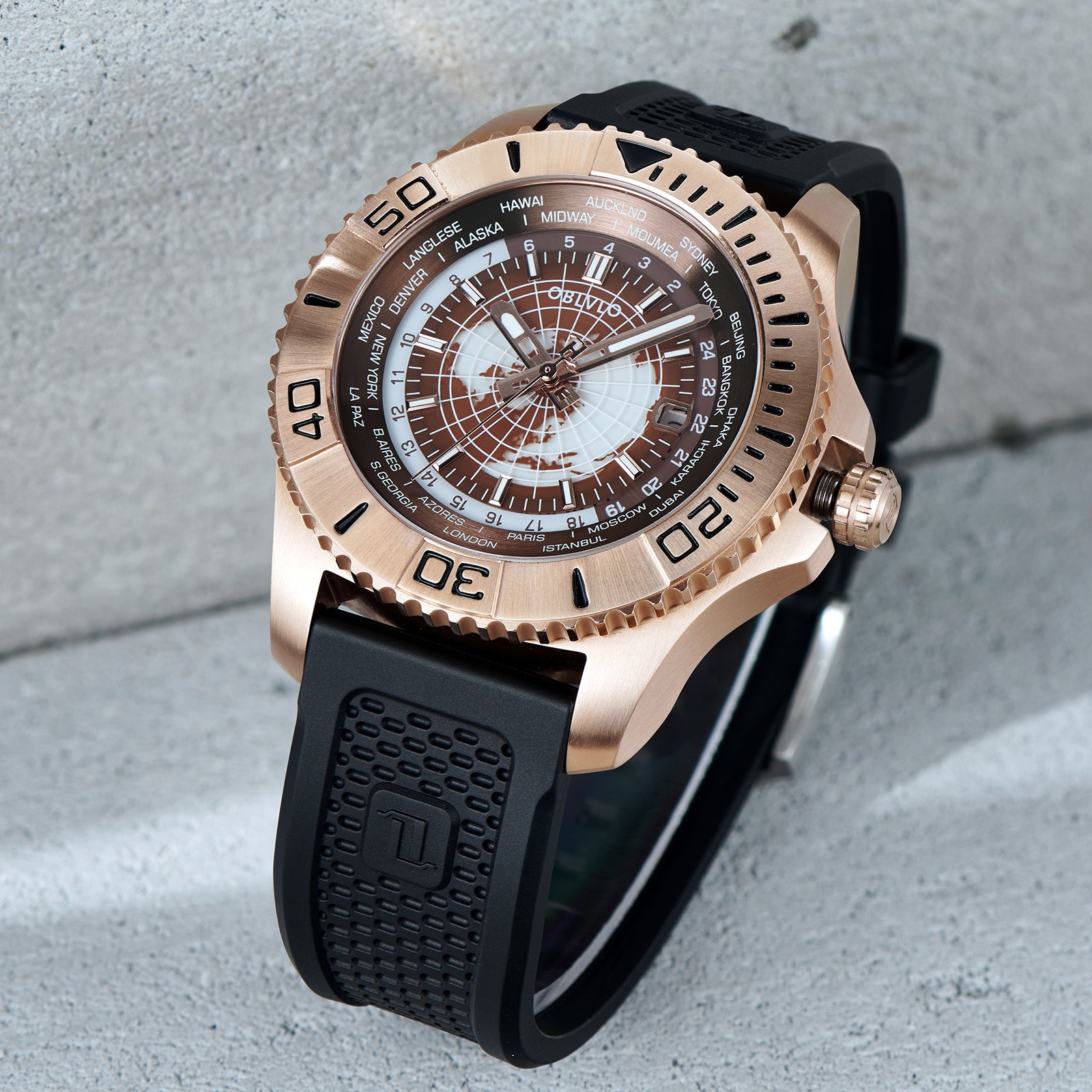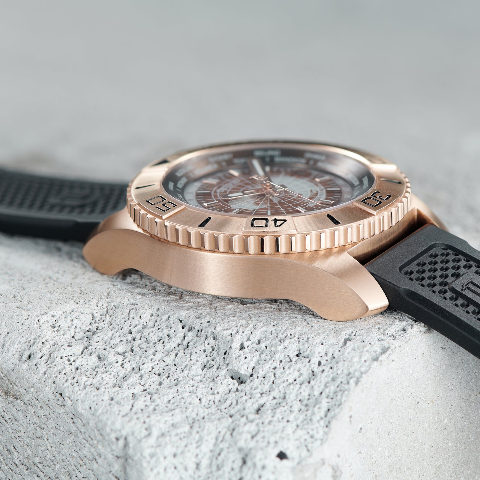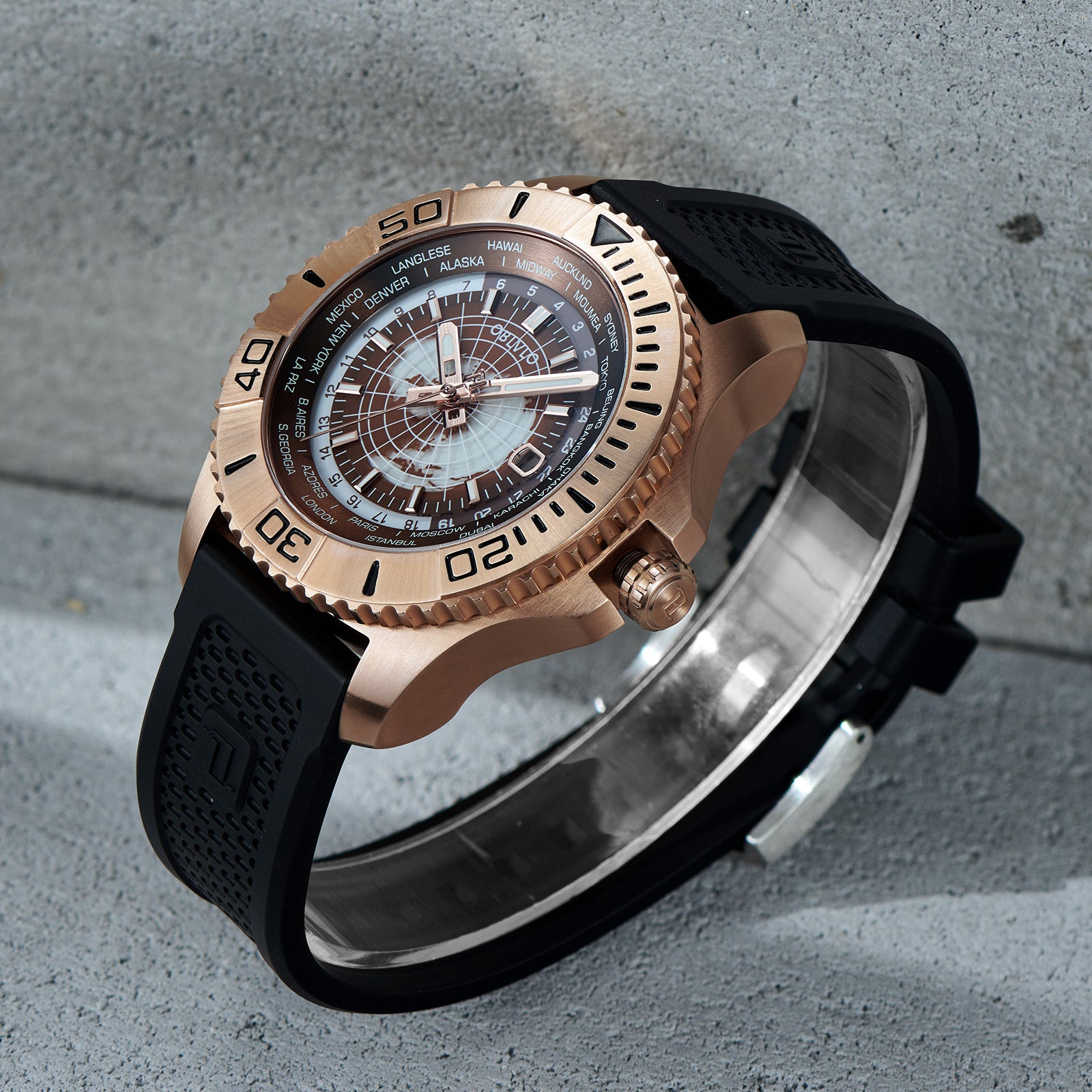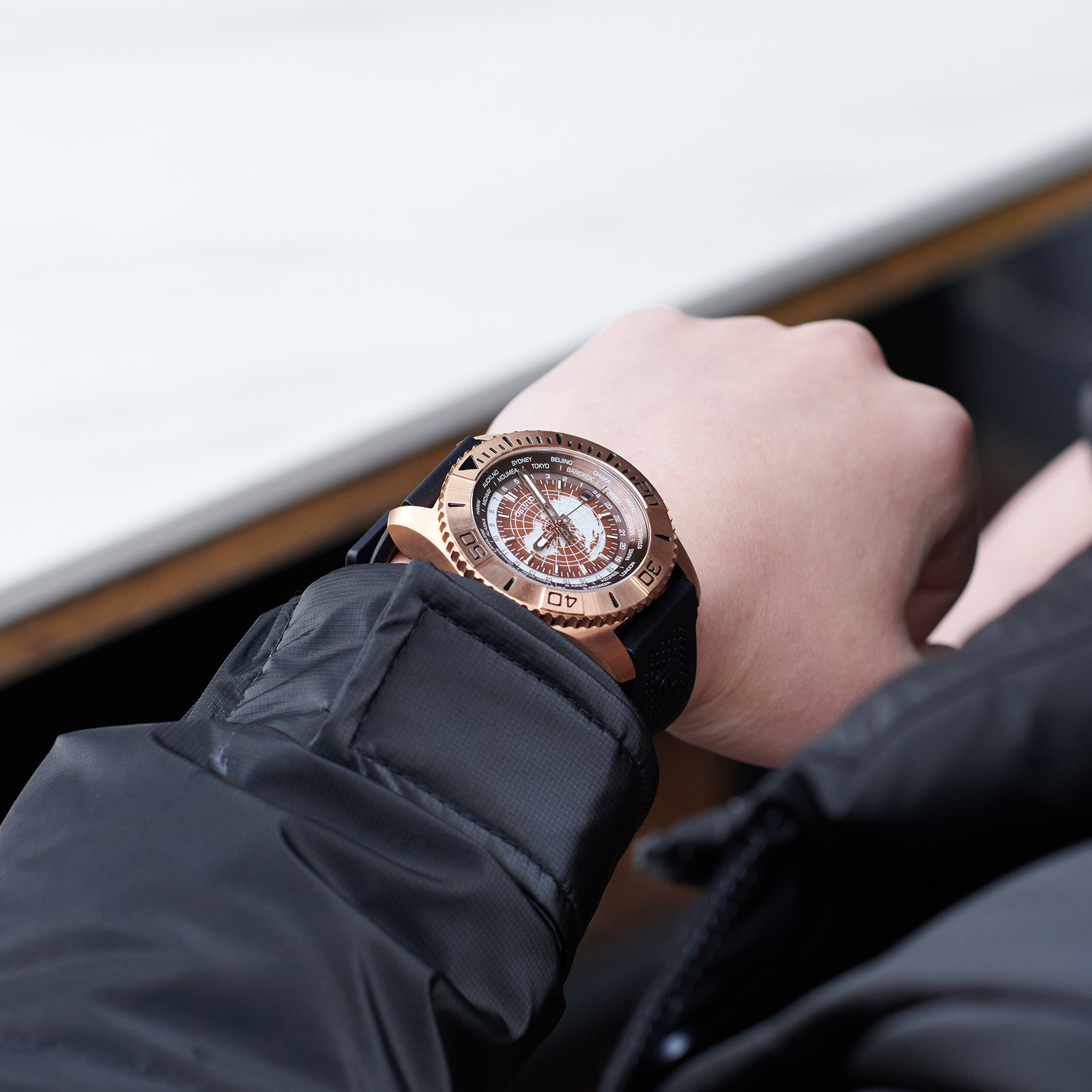 Dial:Brown dial, flat map & silver indices and hands with luminescent coating