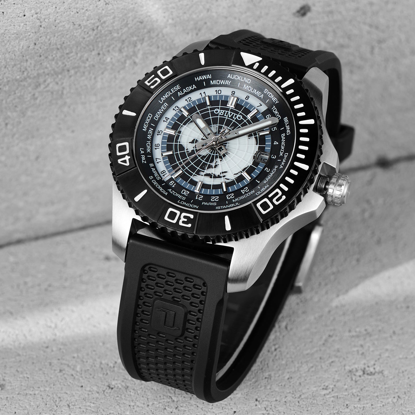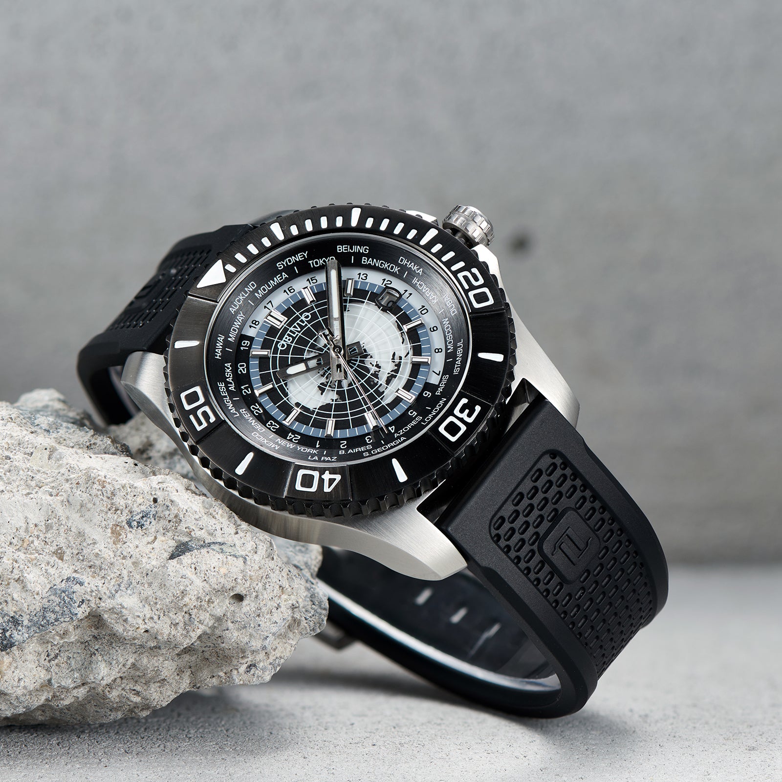 Dial:Black dial, flat map & silver indices and hands with luminescent coating