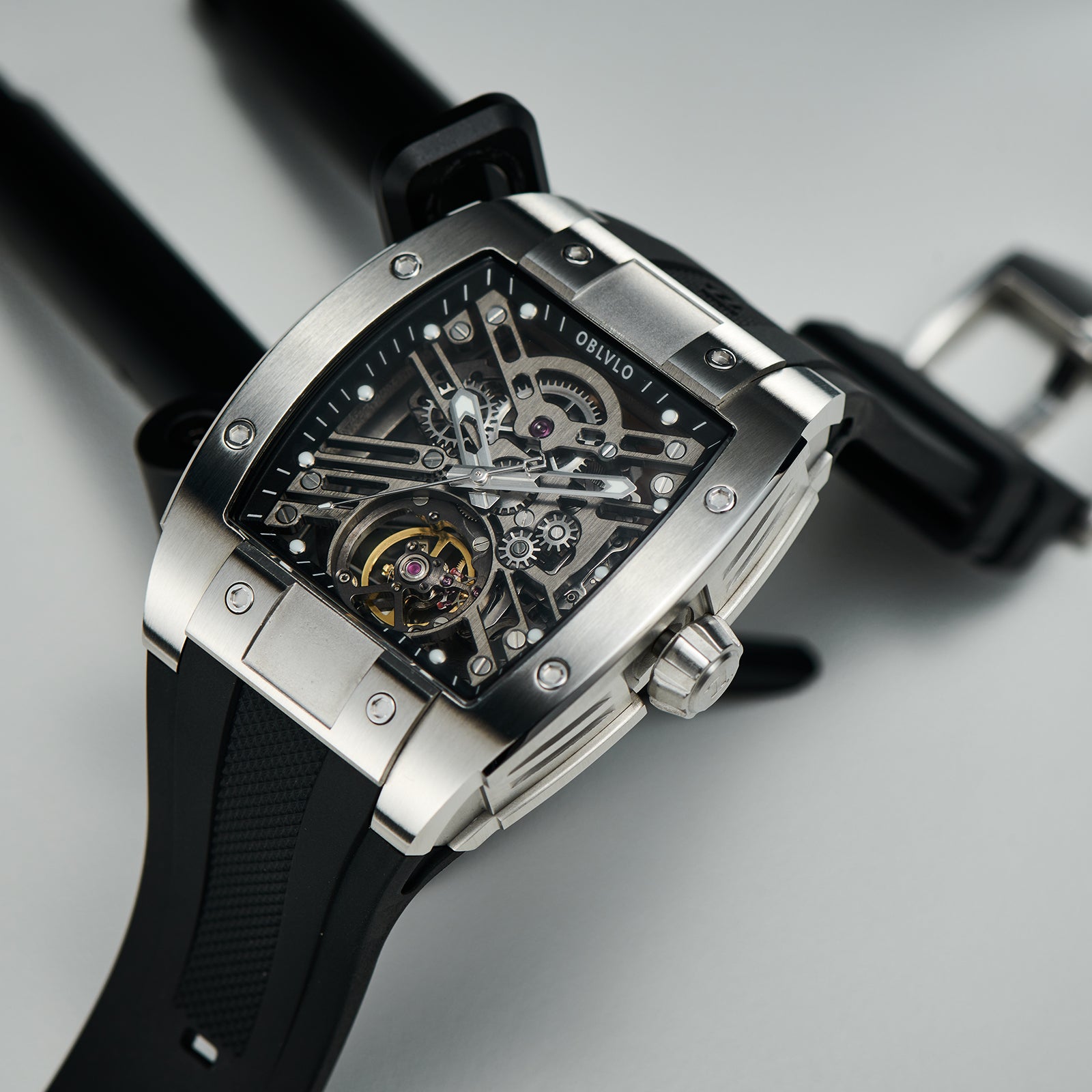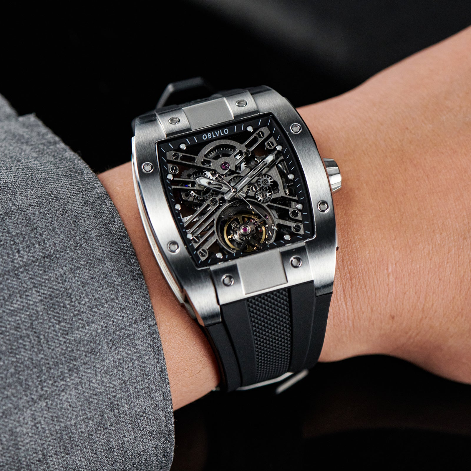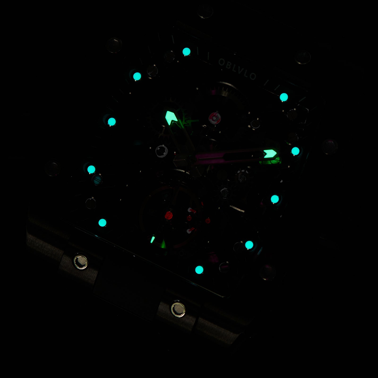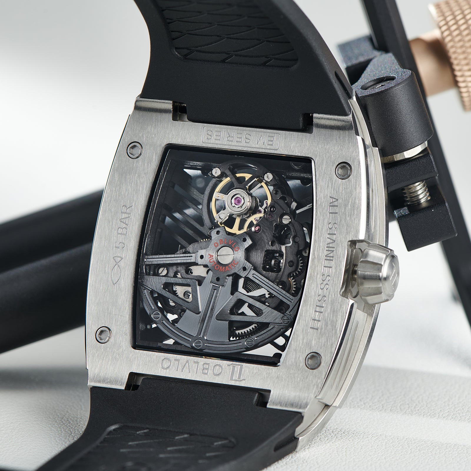The OBLVLO EM-ST Series watches, also known as self-winding watches, eliminate the need for manual winding or battery replacements. They harness the natural motion of the wearer's wrist to wind the watch's mainspring, powering the watch for continuous and precise timekeeping.