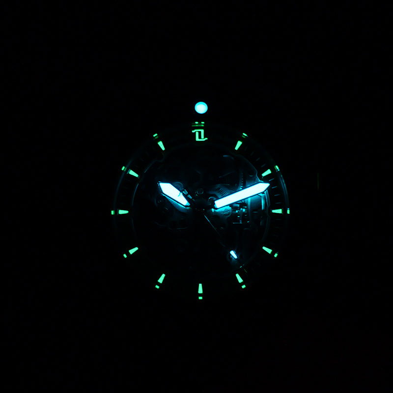 Dial:Skeleton & Black Inner Bezel, Silver Indices And Hands With Luminescent Coating